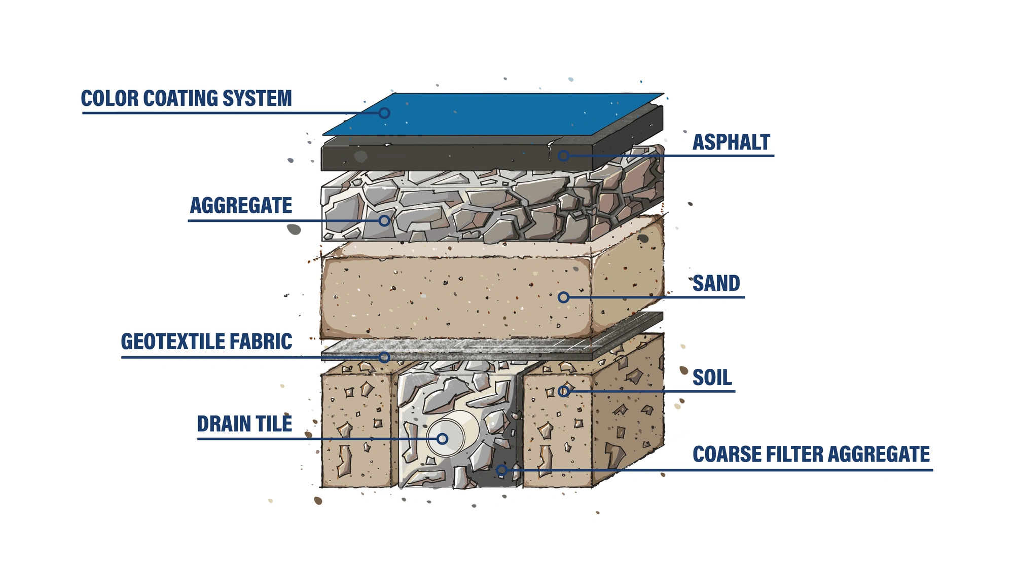 While all that material helps manage frost and moisture, asphalt is still a flexible surface; however, movement in the subgrade often results in cracks, dips, and uneven play.