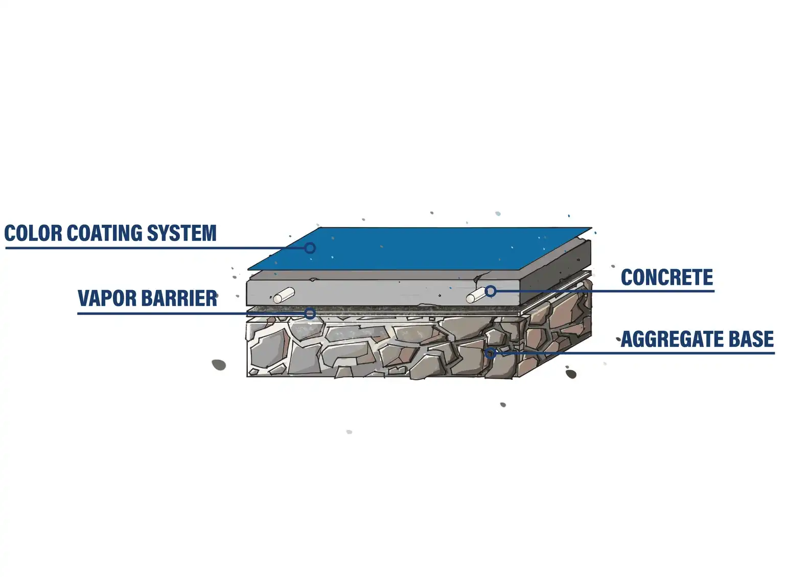 Since the slab is rigid, it can span across minor voids or shifts in soil without telegraphing those movements to the surface. This difference is clear when comparing cross-section graphics: a thick, multi-layer asphalt section versus a simpler, more stable post-tensioned concrete system.