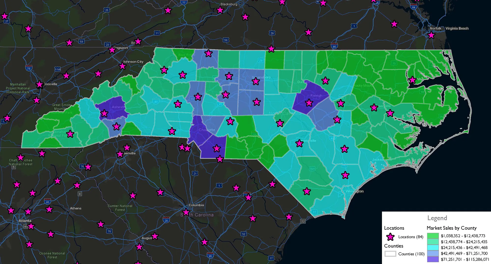 By combining substantial datasets with advanced GIS tools, ISG turns information into insight. Our GIS Market Analysis translates complicated data into straightforward strategies that guide business growth. A few examples of guided growth with the support of our GIS team include: