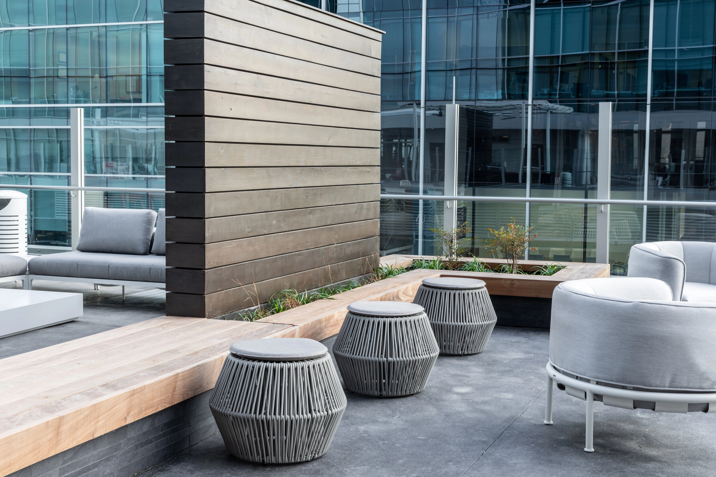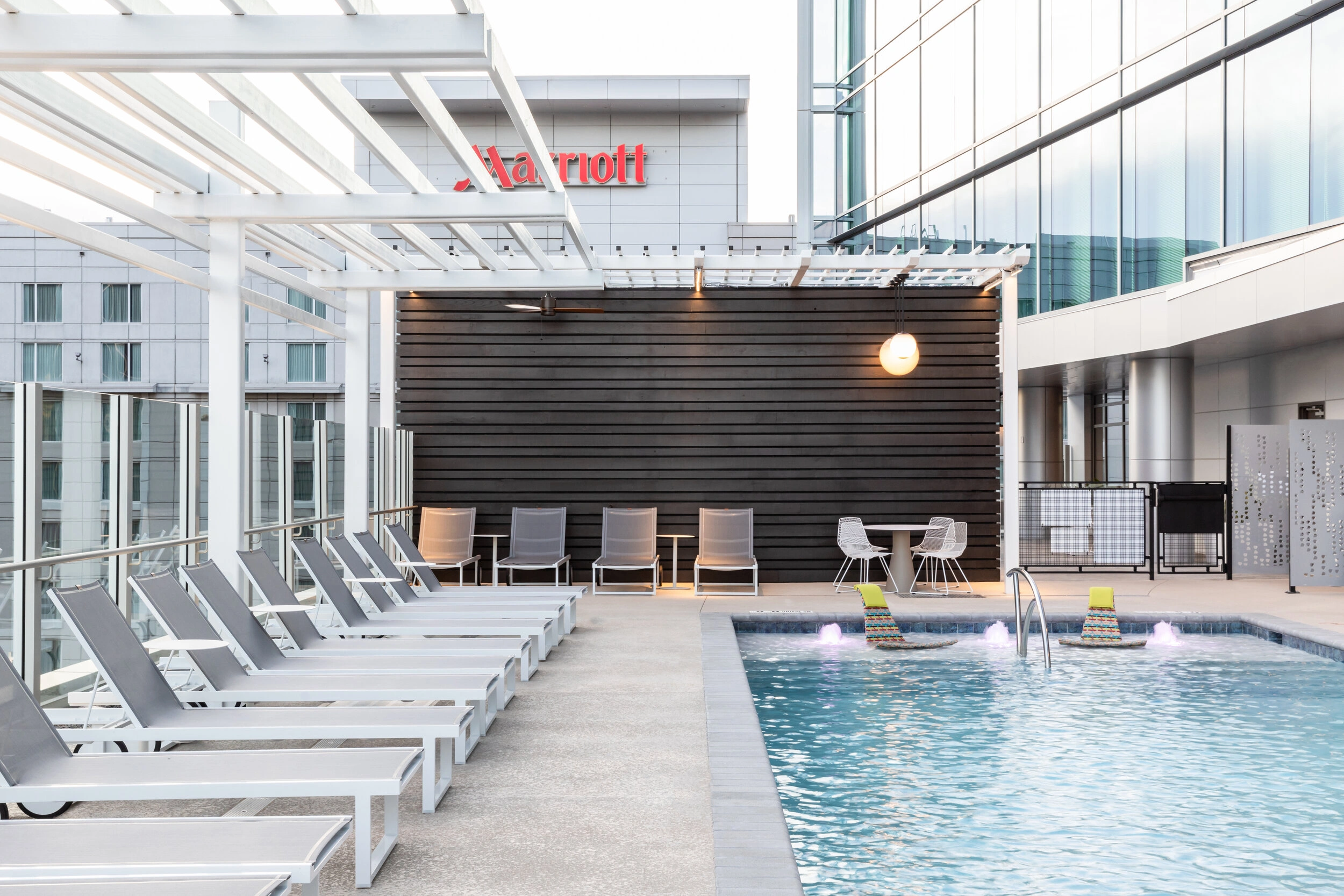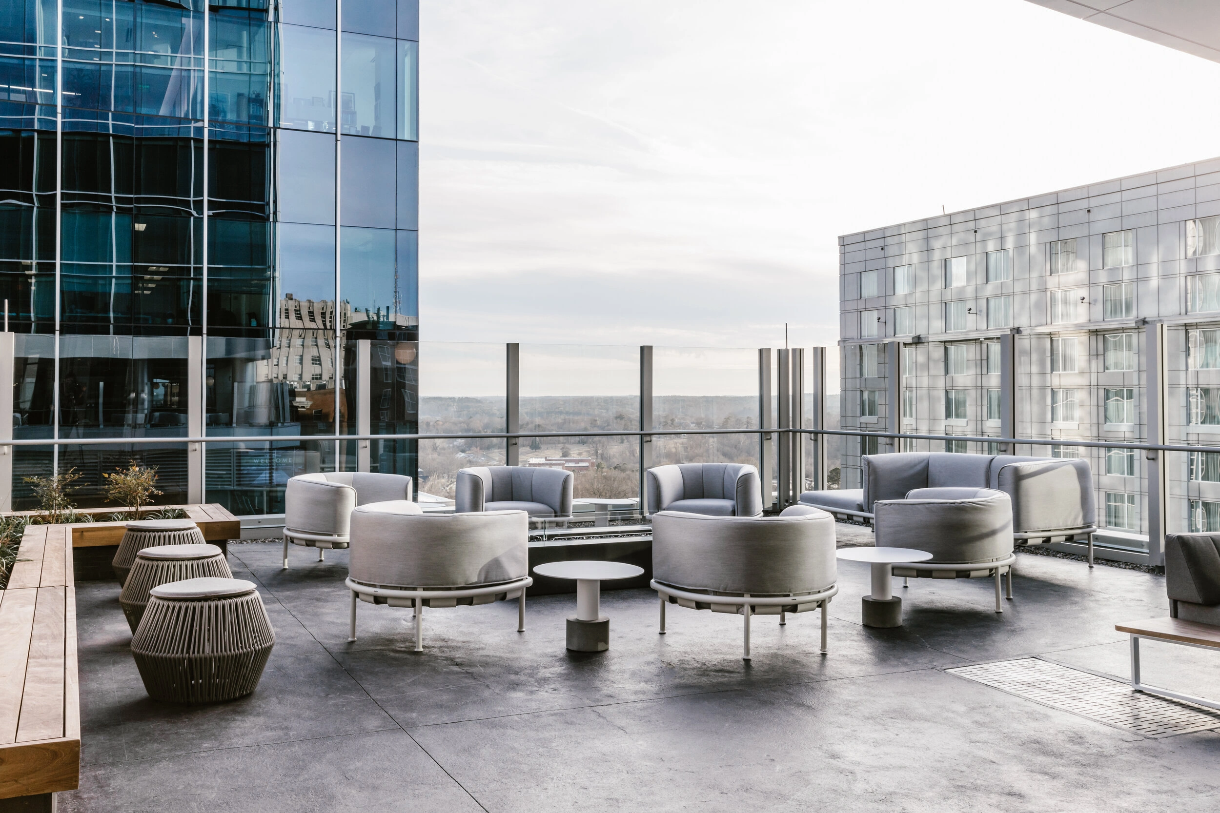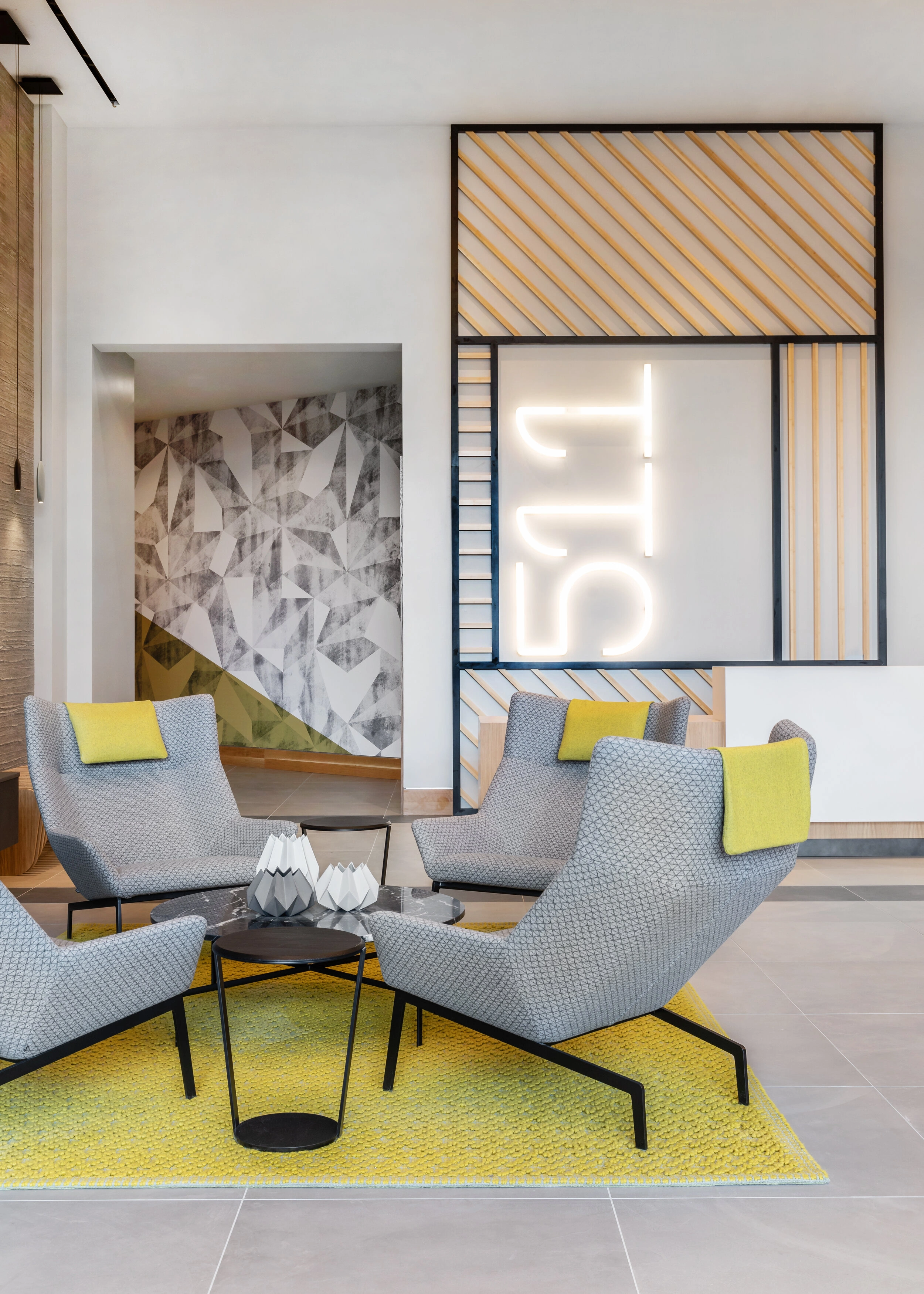 511 Faye is a high-rise luxury apartment community located in FNB Tower in downtown Raleigh, North Carolina. Highlighting the Raleigh skyline and embodying downtown living, the interior of 511 Faye features sleek angles and energetic colors, patterns, and textures to promote a welcoming and dynamic space for residents. The amenities are just as luxurious, featuring a fitness center, yoga studio, and a skydeck with a pool.