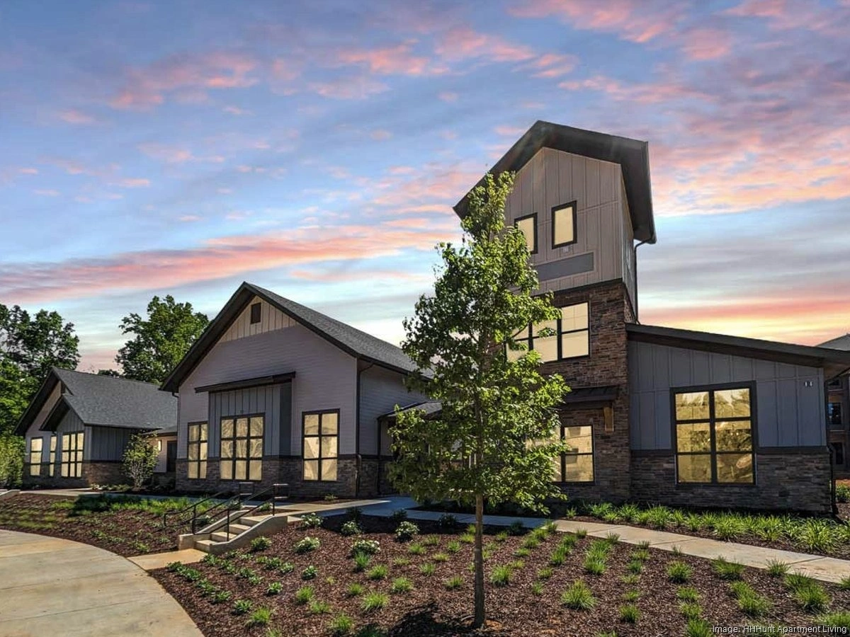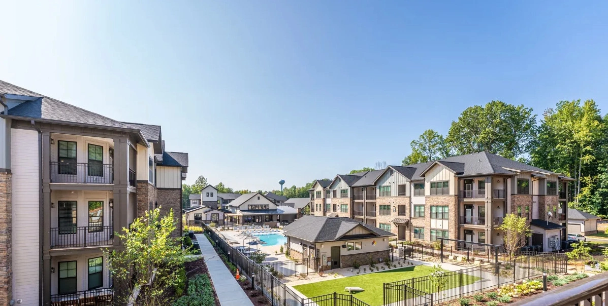 Abberly Commons was created through an extensive visioning process that combined site context, regional history, demographic insights, and competitive context. The result is a multi-building residential community that balances one-, two-, and three-bedroom units, while offering a distinctive architectural concept that is rooted in reclaimed materials, simple forms, and local historic references.