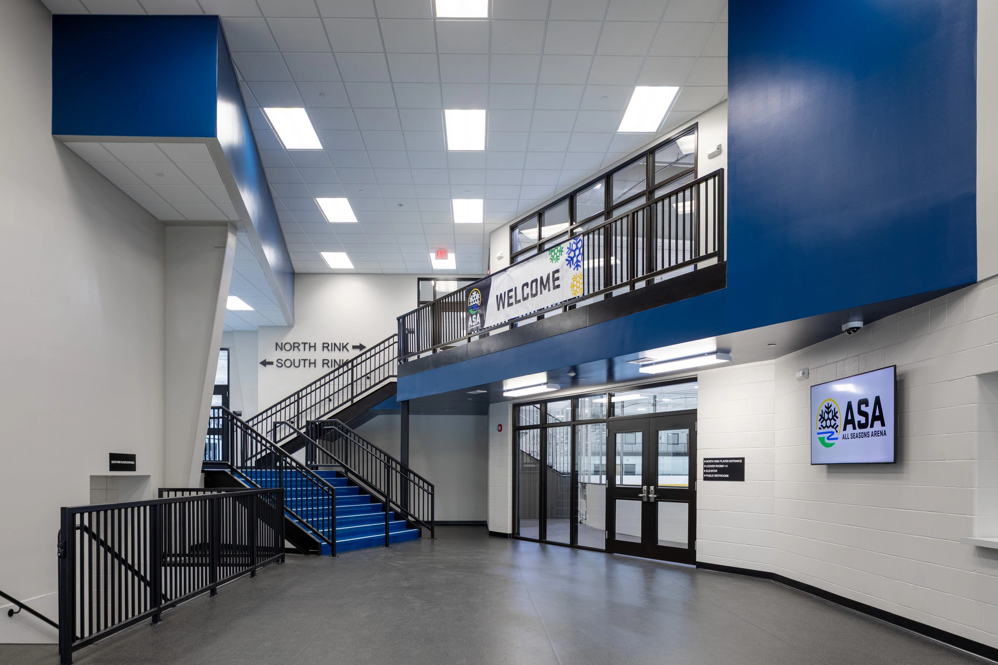 ISG served as a trusted partner on the project from the start, conducting a comprehensive facility assessment to evaluate building systems and infrastructure. Major improvements included new rink floors, updated lobby and concessions, and a new 1,200 sq. ft. refrigeration room including a dehumidification system to preserve facility integrity. The north rink was reconfigured to NHL regulation size and now accommodates 500 additional spectator seats with improved sightlines.