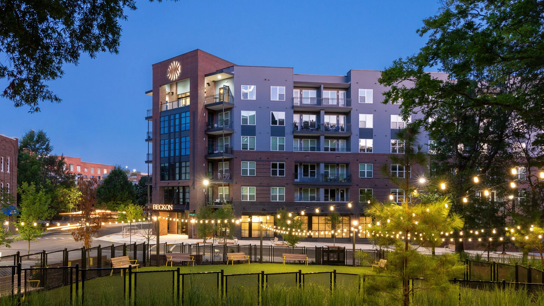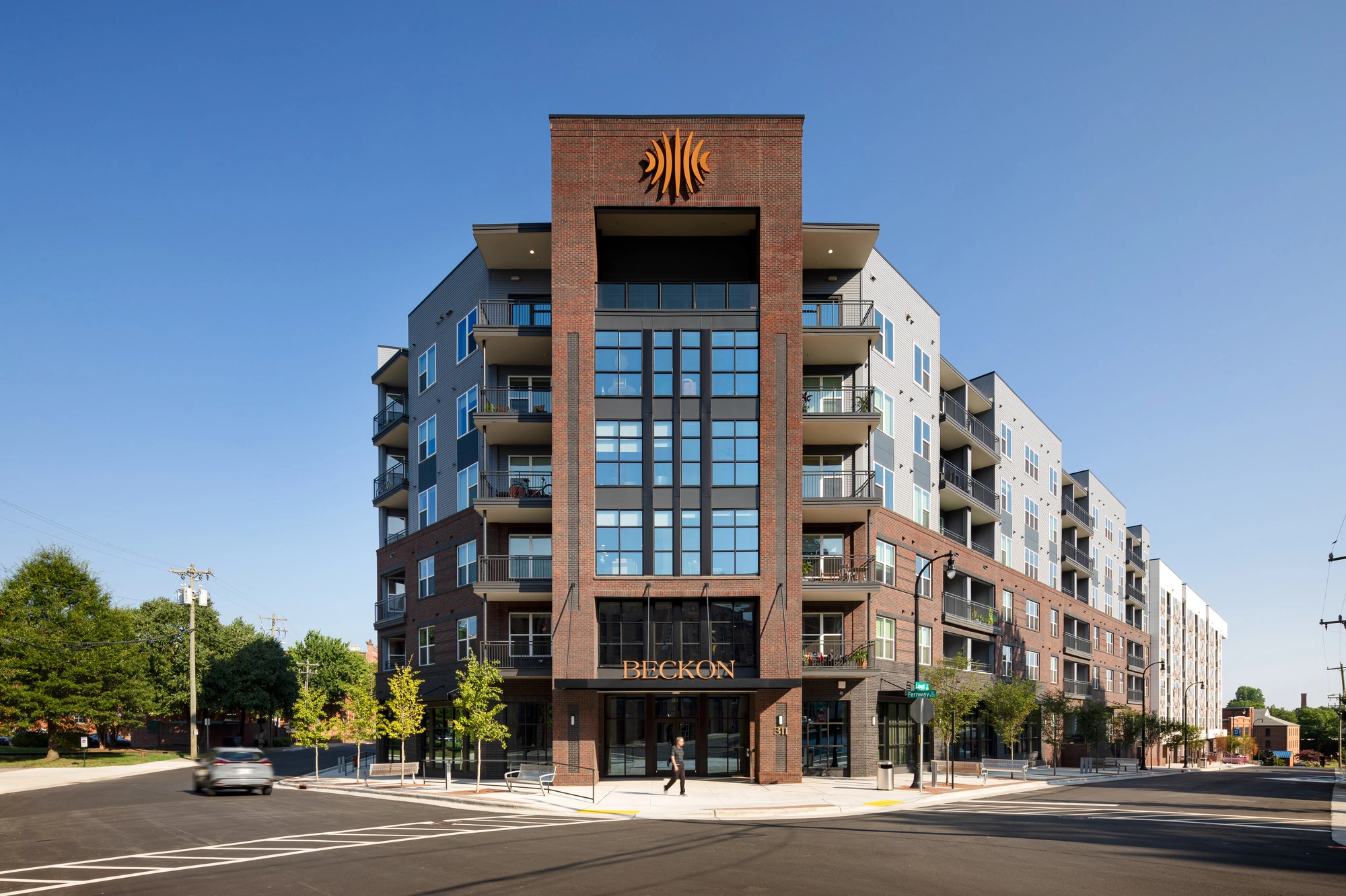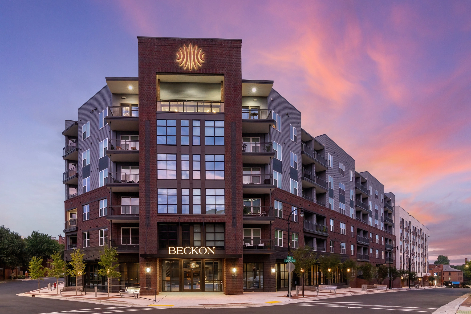 Beckon’s design reflects the energy of downtown Durham while supporting modern amenities and spaces that encourage connection. Positioned along Liggett Street and Fernway Avenue, the building’s form and facade were thoughtfully designed to harmonize with the surrounding Innovation District.