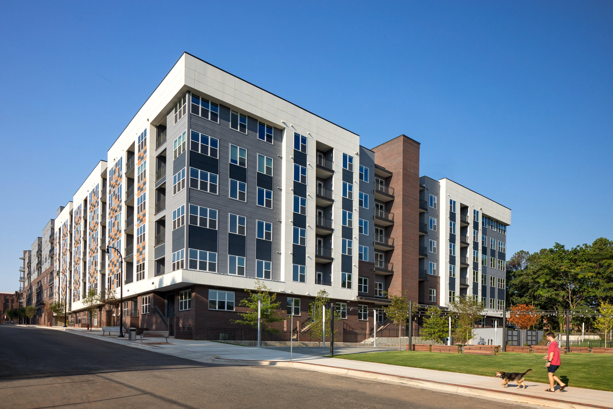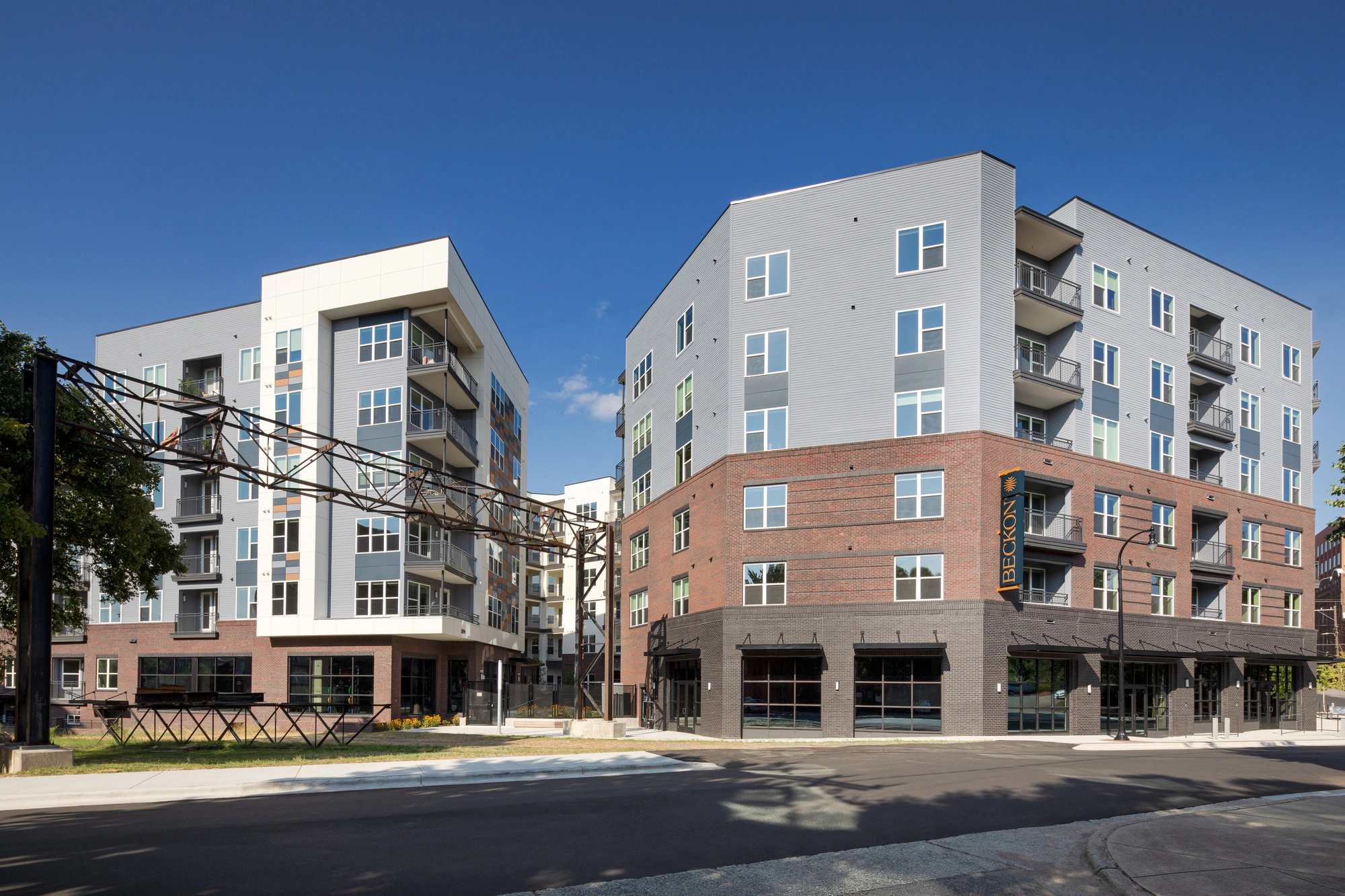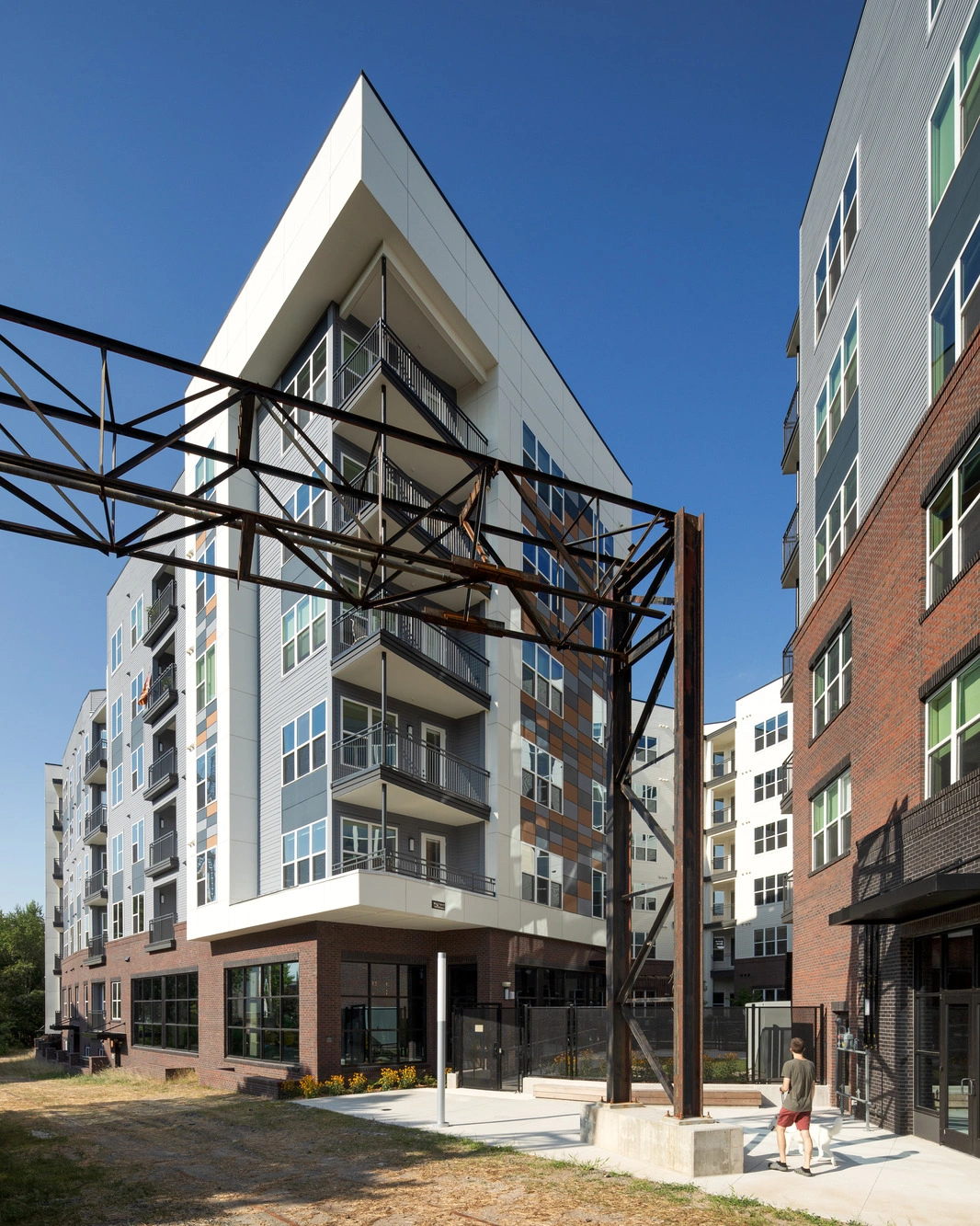Beckon’s design reflects the energy of downtown Durham while supporting modern amenities and spaces that encourage connection. Positioned along Liggett Street and Fernway Avenue, the building’s form and facade were thoughtfully designed to harmonize with the surrounding Innovation District.