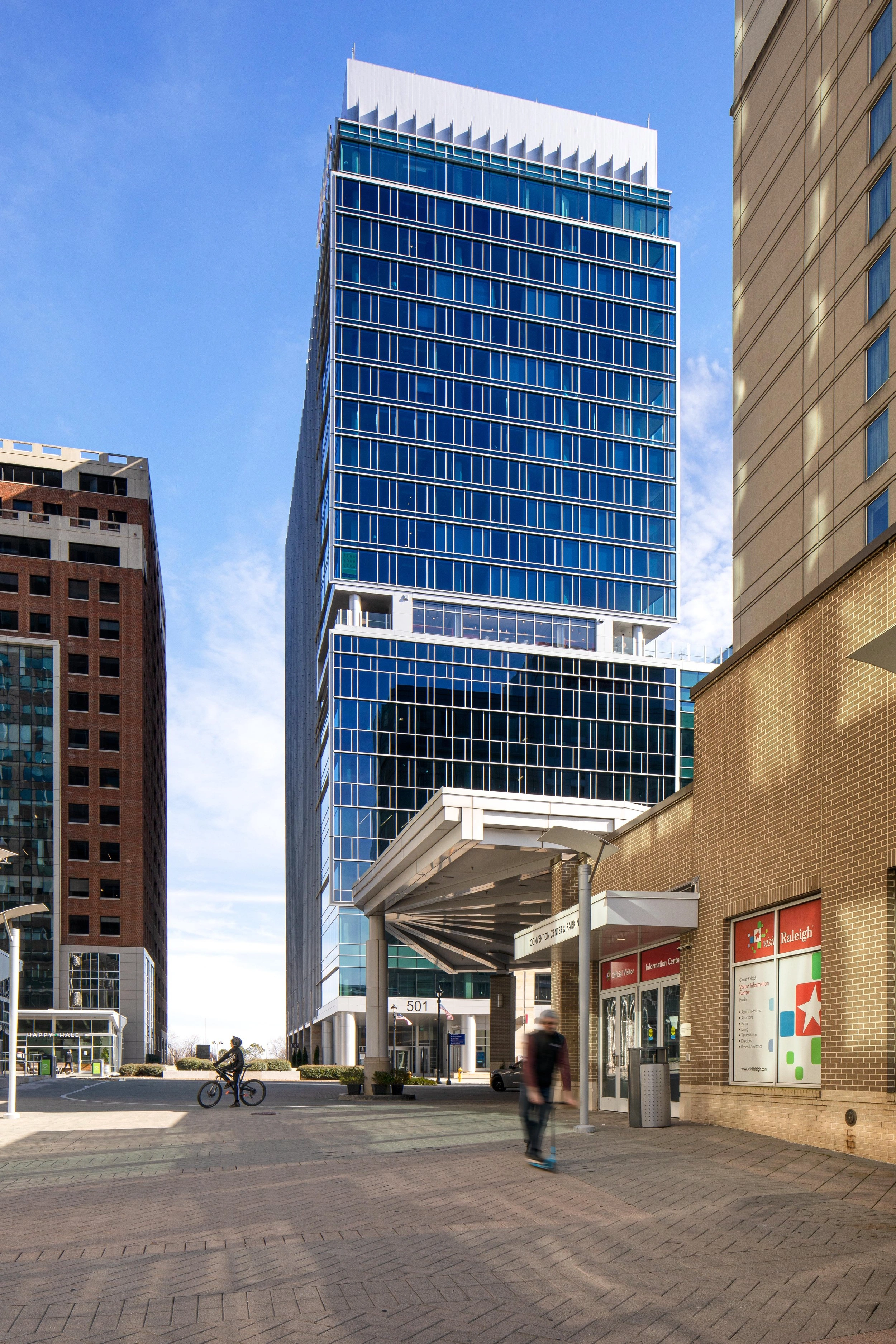 ISG partnered with Dominion Realty Group to design FNB Tower, a downtown high-rise building that provides luxurious and modern spaces for working and living. Contributing to the Raleigh skyline and the downtown experience, FNB Tower includes apartments, amenity spaces comprised of a skydeck with a pool, fitness center, and game room, along with commercial office and first-floor retail space. The building is LEED certified Gold and the first building in Raleigh to receive LEED and Green Globes certifications for qualities such as energy conservation and lowered water consumption.