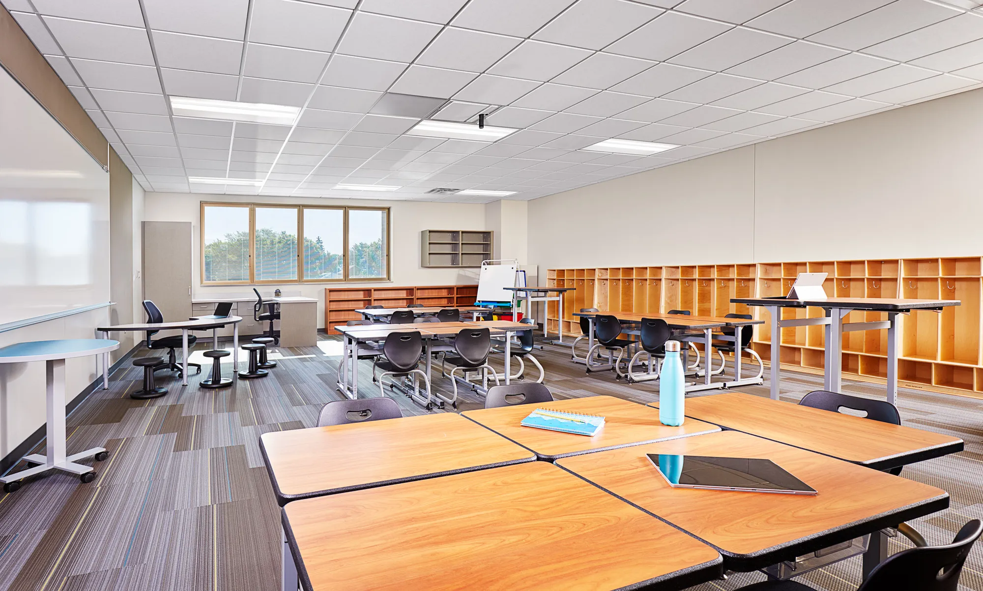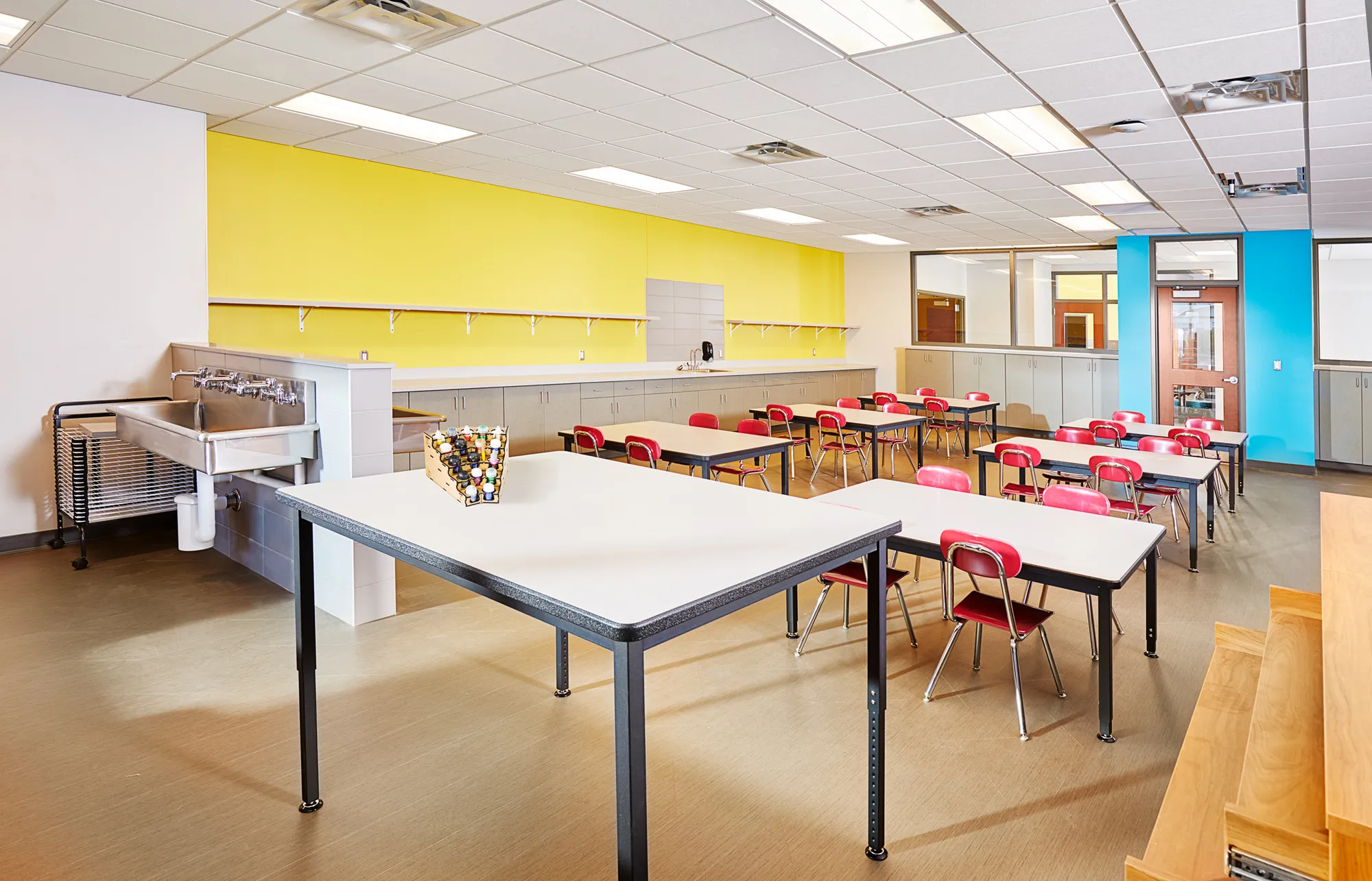 The new elementary school included a classroom pod format with flexible teaching areas for collaboration and group workspaces, maker spaces in the library, and a new music room.