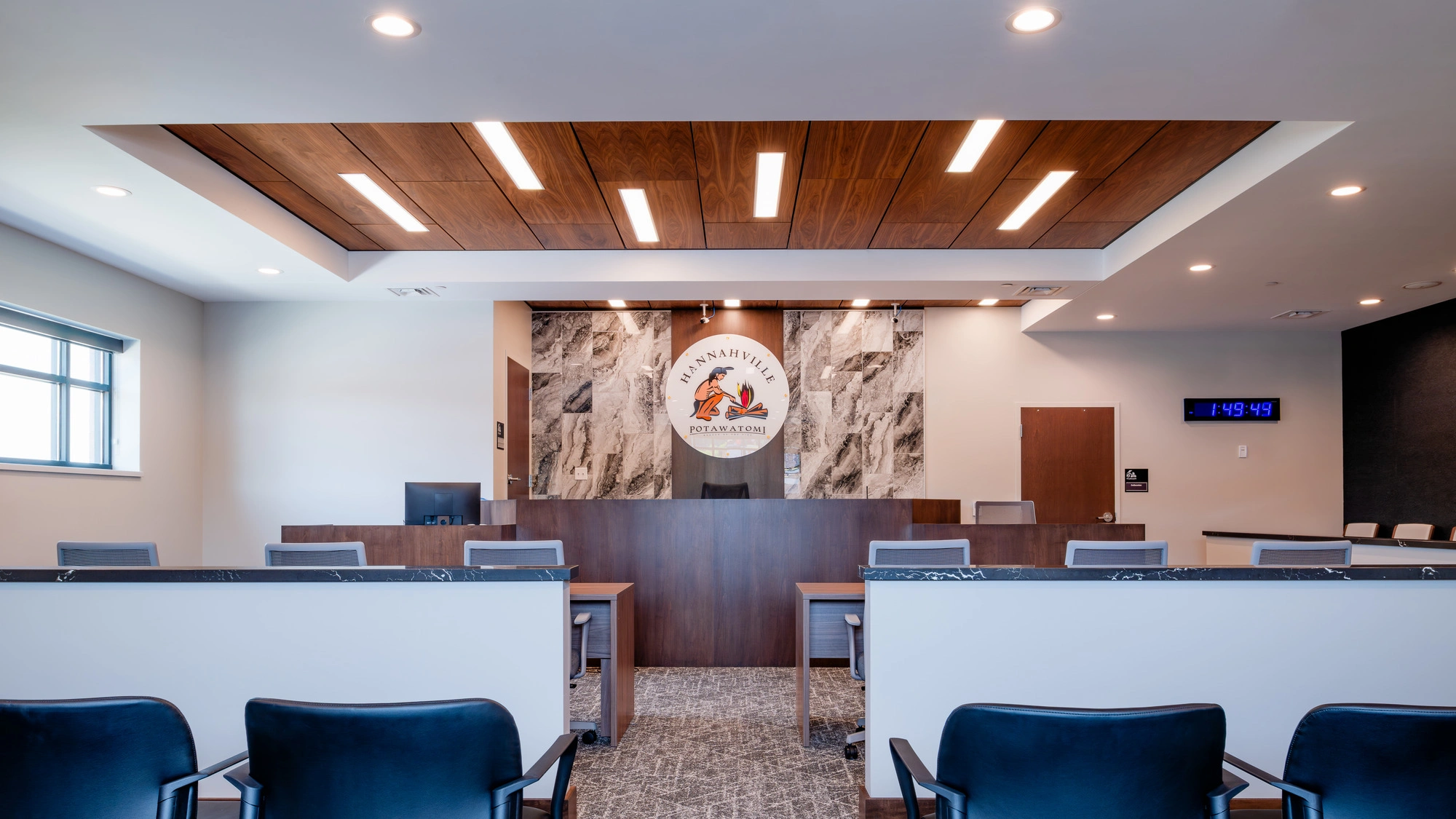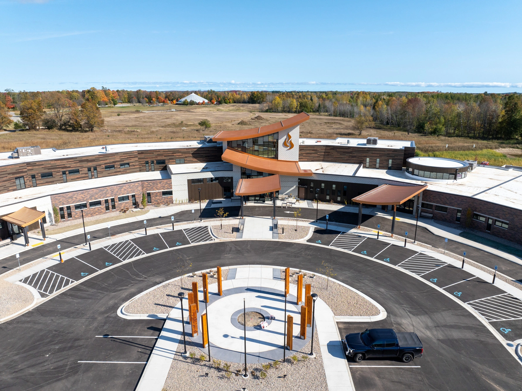 The Hannahville Indian Community needed a culturally sensitive and experienced design partner to centralize its community services in a new facility. ISG partnered to provide healthcare facility design with community-focused programming solutions, creating a space for administrative, judicial, and health care services, along with a commercial kitchen and flexible community center spaces.