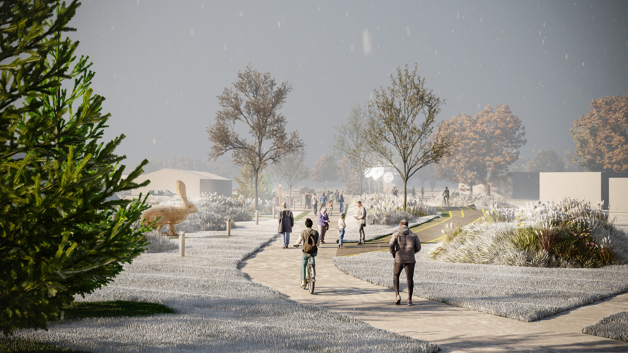 When the City of Ankeny had a goal to develop a bicycle tourism destination for High Trestle Trail travelers, they partnered with ISG to transform a section of trail in a historic uptown neighborhood into an untraditional park. We designed the linear urban oasis to detour off the main trail—a 25-mile Iowa Natural Heritage Foundation rails to trails project—with interactive features like public art prairie animals, a glow-in-the-dark trail, nature-based play exploration areas, and a rolling trail stroller-coaster. This unforgettable park experience offers inclusive recreational opportunities and celebrates the success of the iconic High Trestle Trail.