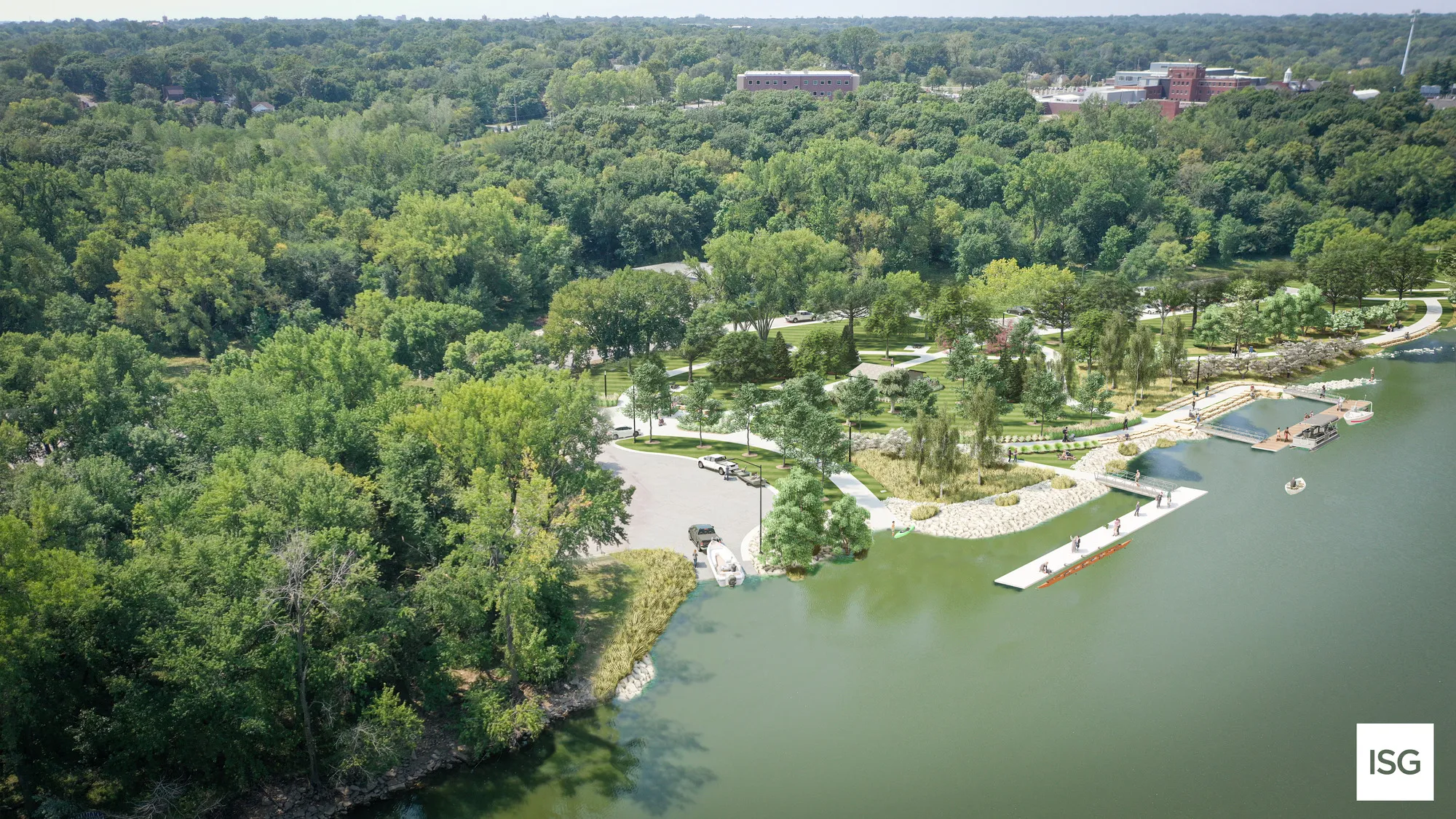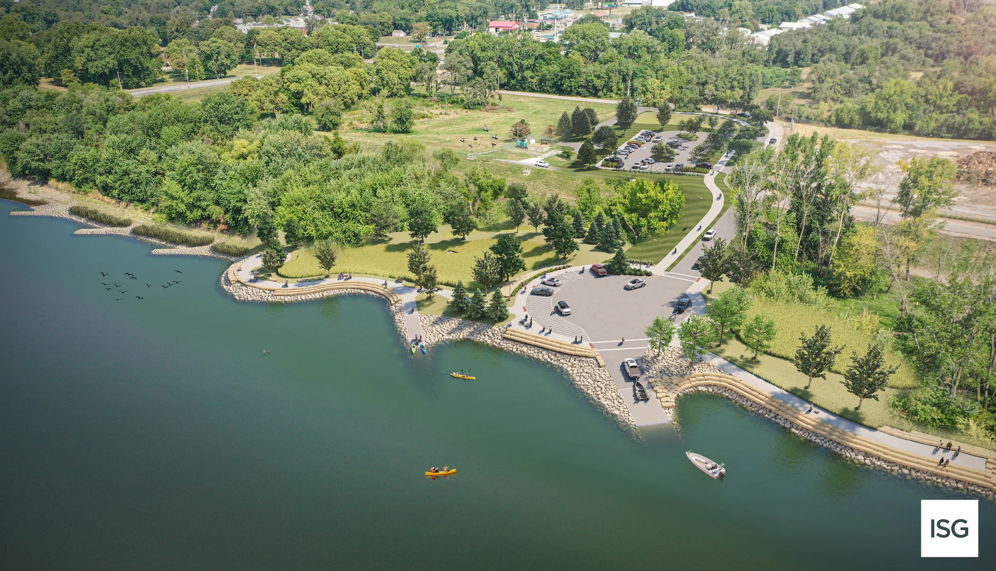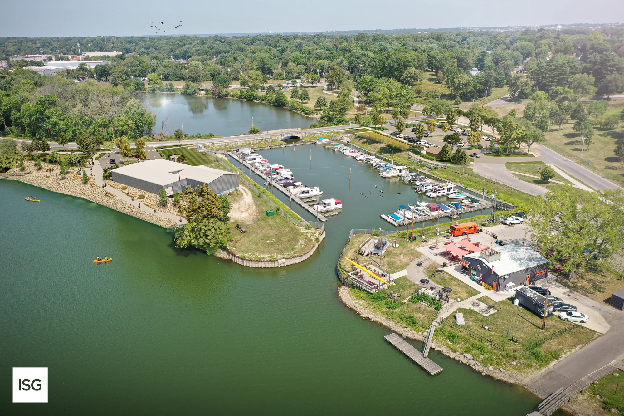 The Birdland Marina Masterplan buildout includes motorized boat access, restrooms, park facilities, and hospitality options. Once fully constructed, the site will serve as the primary outfitter for ICON Water Trails operations and tie into the economic revitalization plan for the surrounding Des Moines neighborhood and its overarching City park programming.