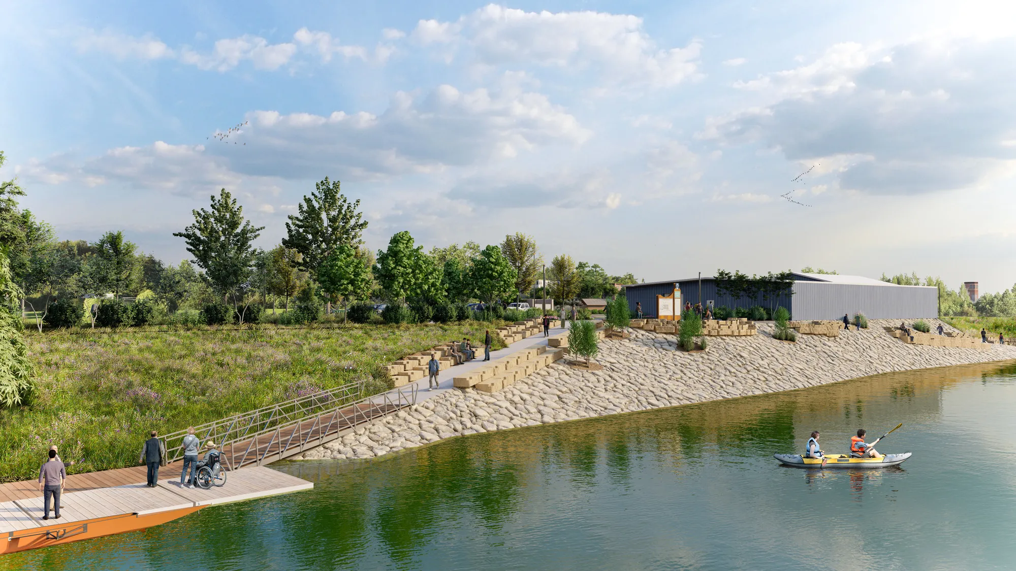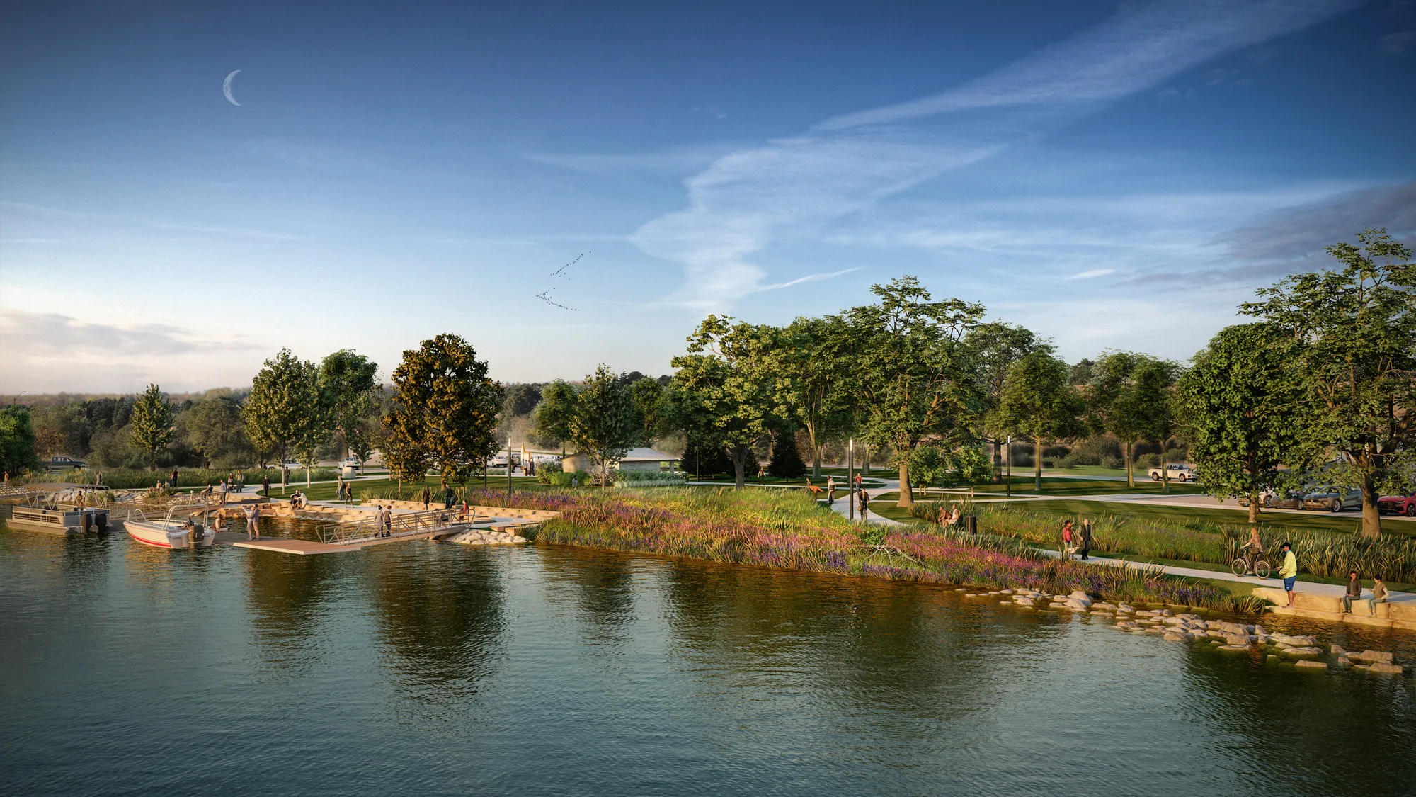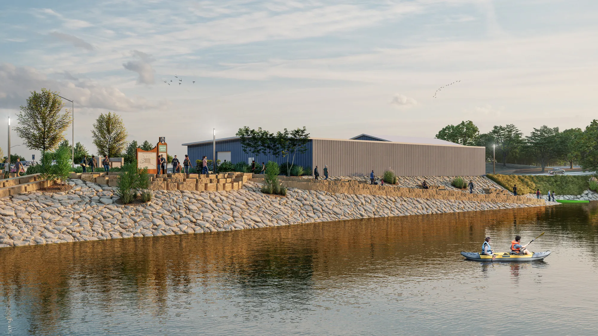 The Birdland Marina Masterplan buildout includes motorized boat access, restrooms, park facilities, and hospitality options. Once fully constructed, the site will serve as the primary outfitter for ICON Water Trails operations and tie into the economic revitalization plan for the surrounding Des Moines neighborhood and its overarching City park programming.