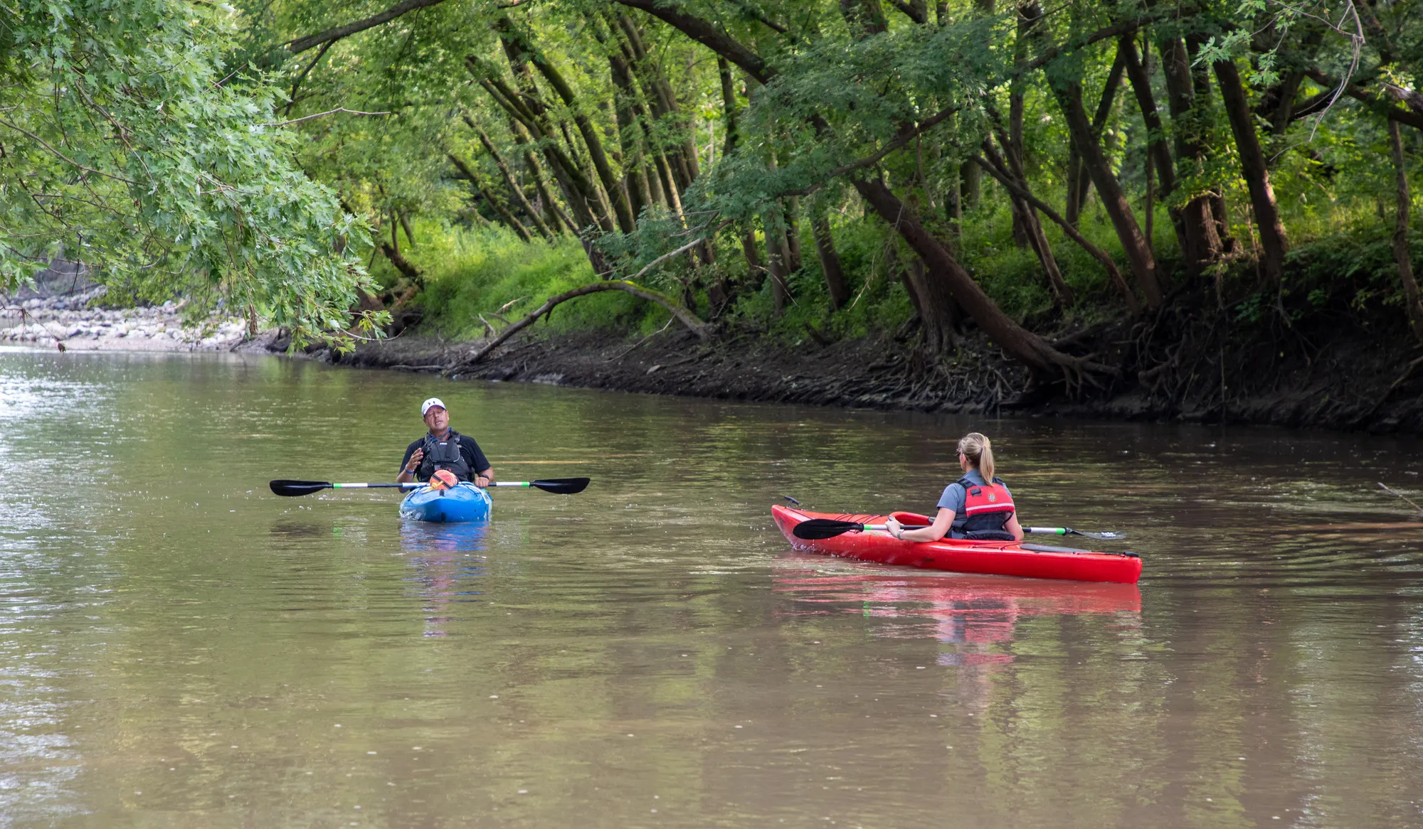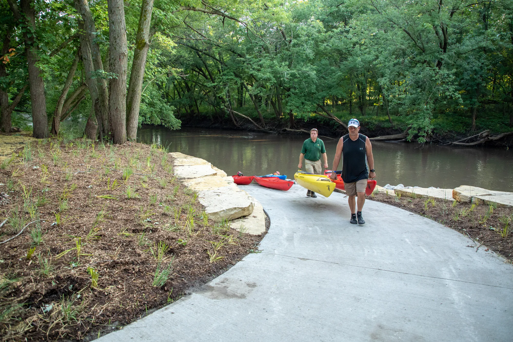Design improvements for Beaver Creek access, a key launch point in the Beaver Creek Trail System, included a hard trail, an updated parking area, a concrete access ramp, creek bank armoring, and wayfinding signage.
