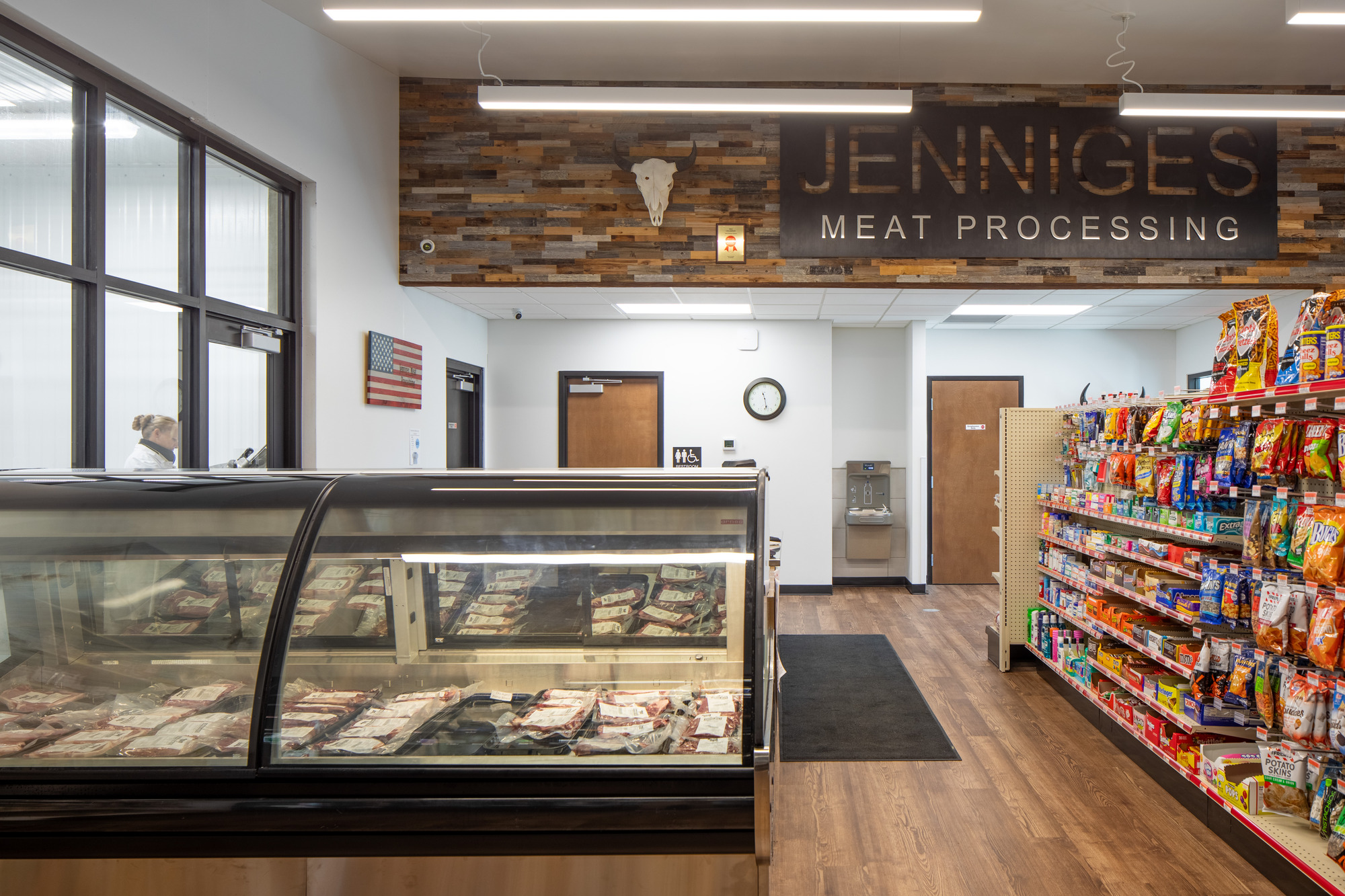 Jenniges Meats, a family-owned meat processor, needed a new facility to expand operations and better serve their growing customer base. ISG provided planning, design, and engineering expertise to create a high-performance facility tailored to the owner's operational needs. The new building boosts production capacity, improves efficiency, and offers easy access for customers and deliveries.