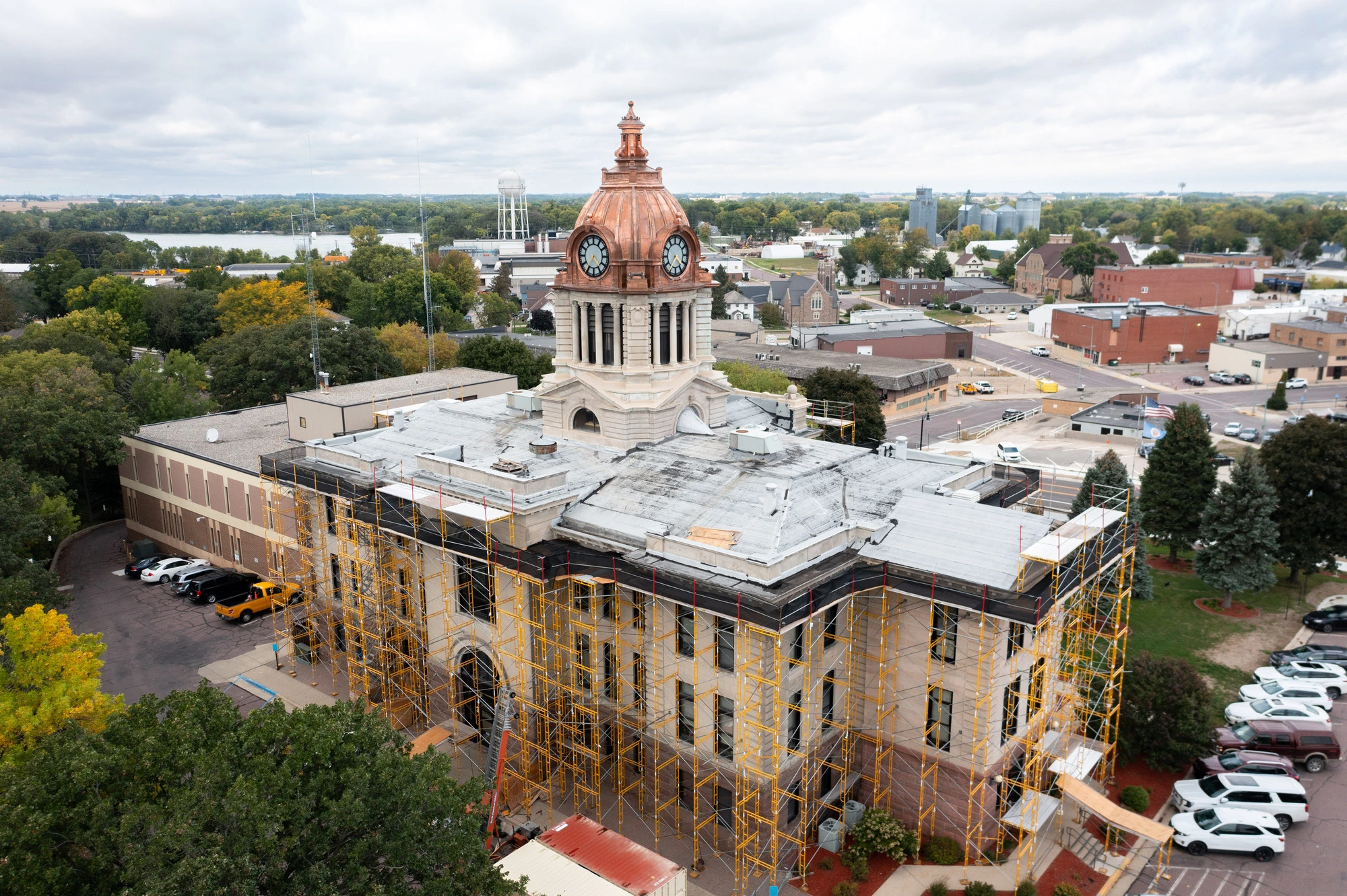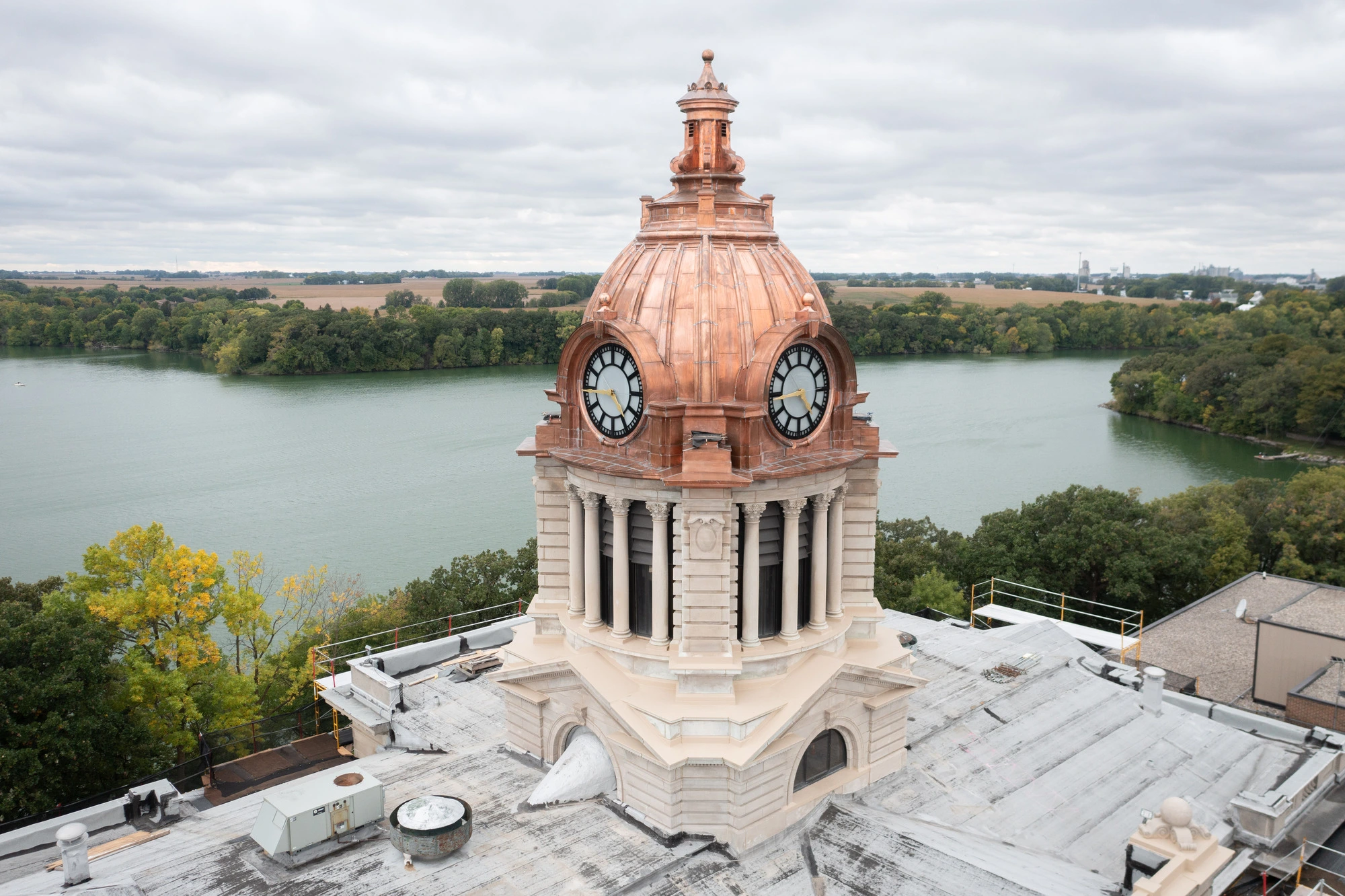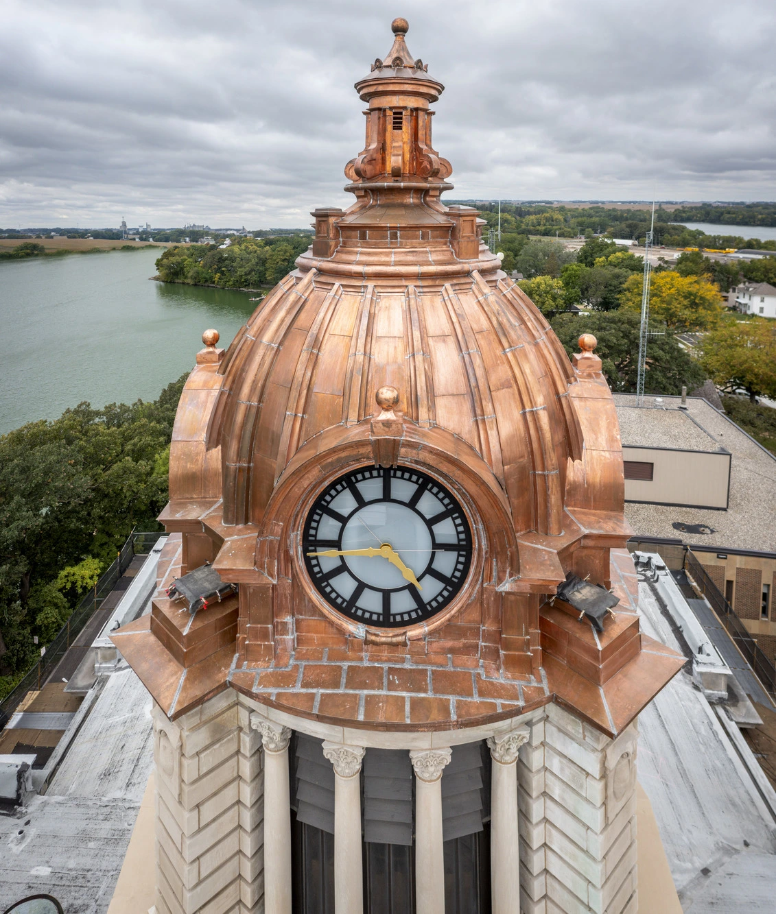 The Martin County Courthouse, built in 1907, partnered with ISG for a comprehensive restoration to address extensive deterioration, including leaks and structural damage to its iconic architecture. ISG led the project, guiding each stage of the restoration with advanced technology like drone photography and 3D scanning to ensure precise preservation. The restoration revived key historic elements, including the 50-foot-tall copper dome, four seven-foot-tall glass clock faces and dials, and majestic copper eagles with six-foot wingspans. ISG’s work preserved the courthouse’s legacy, meticulously restoring its character and securing its presence for future generations.
