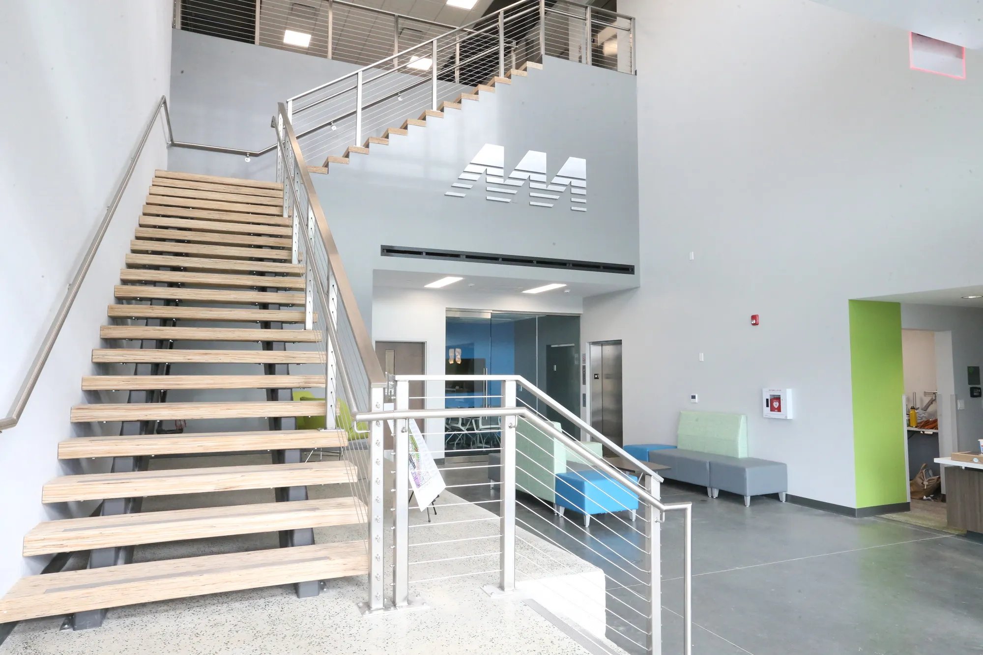 To accommodate Iowa’s urban population growth, Metro Waste Authority invested in a new recycling facility, which houses state-of-the-art equipment, capable of sorting and baling 45,000 tons of recyclables each year. A multi-purpose space on the upper-level overlooks recycling operations and offers hands-on learning stations to educate the community on how their recycling materials impact the environment. Modern finishes, natural light, and a tall glass lobby welcomes visitors and staff alike.