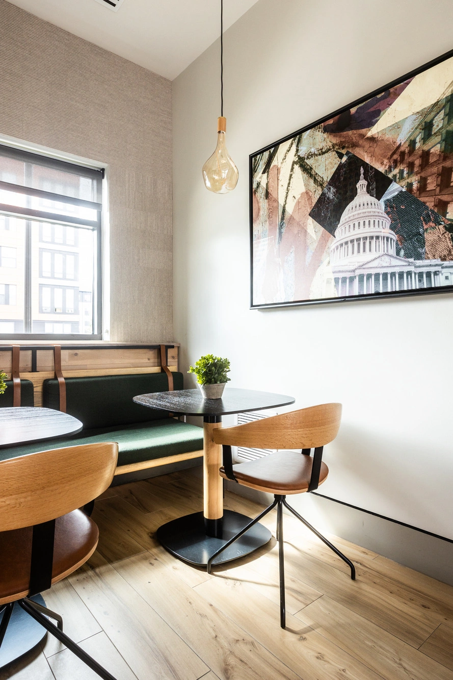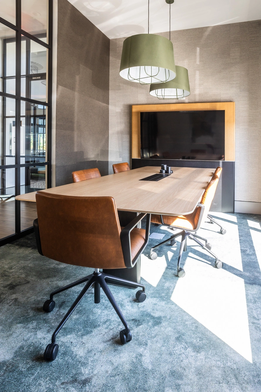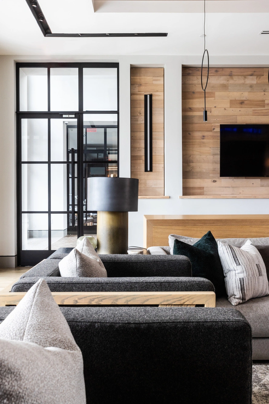 Motiva’s interior design concept establishes an upscale industrial aesthetic with a contemporary edge. Distressed wood, raw black metal, and recycled rubber flooring are balanced with sustainable materials such as glass, leather, and moss. A warm earth-tone palette, factory-inspired lighting, and bold detailing reinforce the authentic warehouse character.