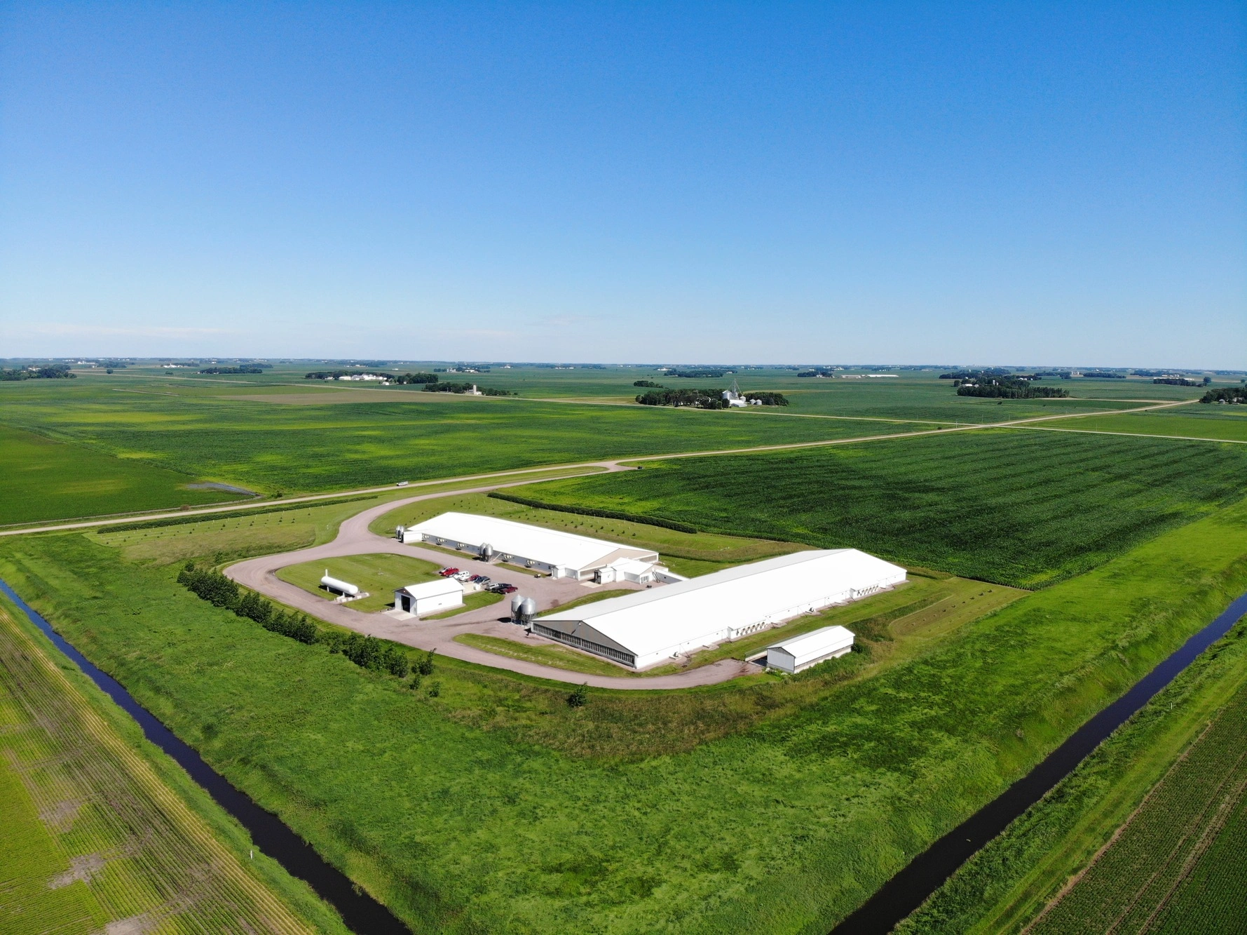 To help position a client’s new swine facility in Nicollet County for efficient operations while meeting regulatory and environmental requirements, ISG supported the development of a 15-acre site that integrates barns, waste management, and infrastructure. The project included a gestation barn, farrowing barn, and supporting systems, with careful attention to grading, drainage, and long-term site performance.