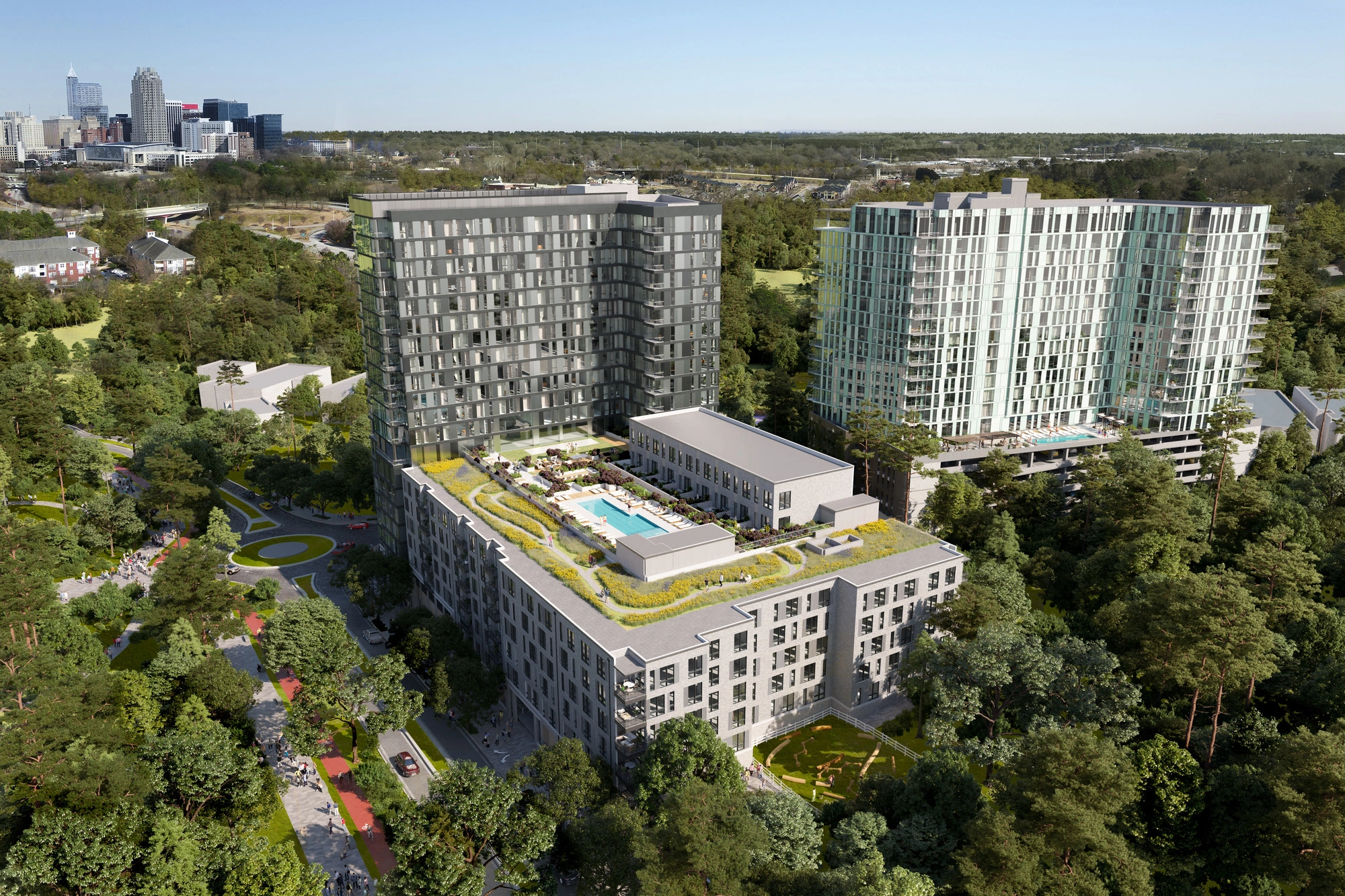 The Ray is a high-rise residential community within The Weld mixed-use development, combining sophisticated design with purposeful amenities. Adjacent to Dorothea Dix Park, it offers stunning views, urban convenience, and seamless access to green space.