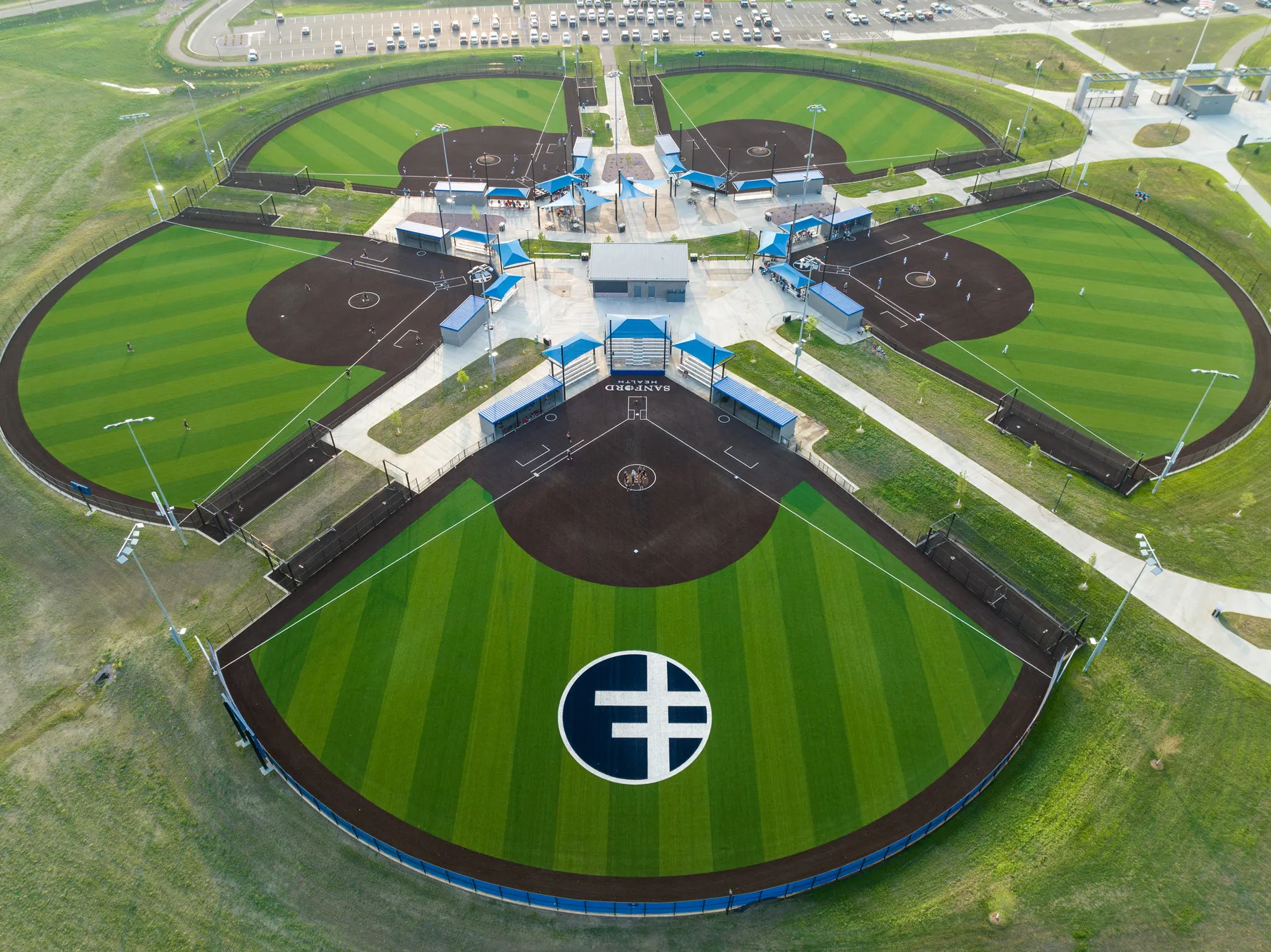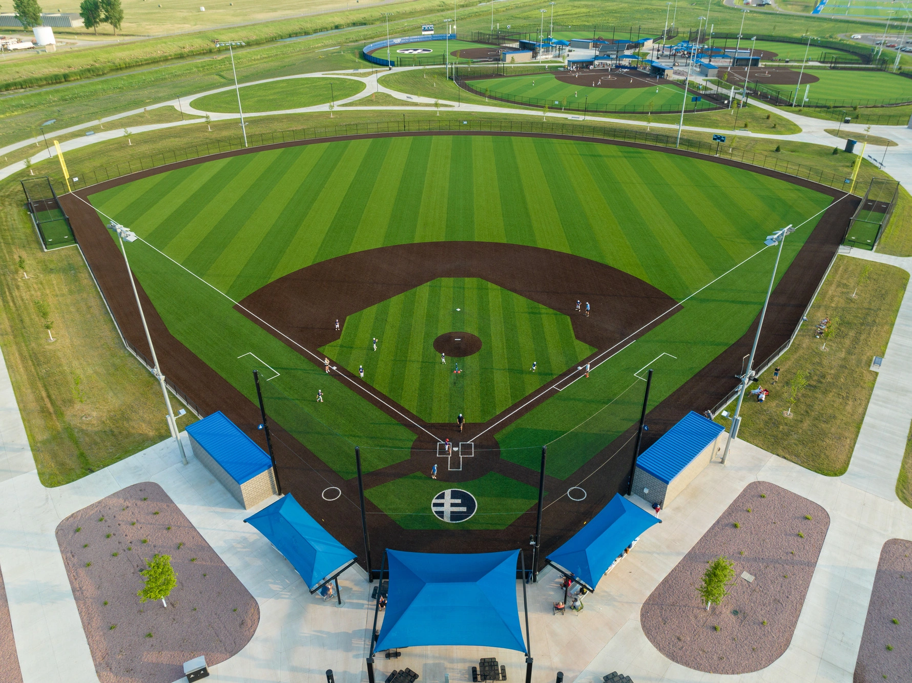 ISG’s work for Sanford Sports Complex includes five baseball fields, five softball fields, 10 soccer/lacrosse/multi-purpose fields, three restroom and concession buildings, 900+ parking spaces, shade structures, lighting, special pavements, bleacher seating, native landscaping, and unique seating berms, creating one of the most sought-after outdoor athletic complexes in the Midwest.