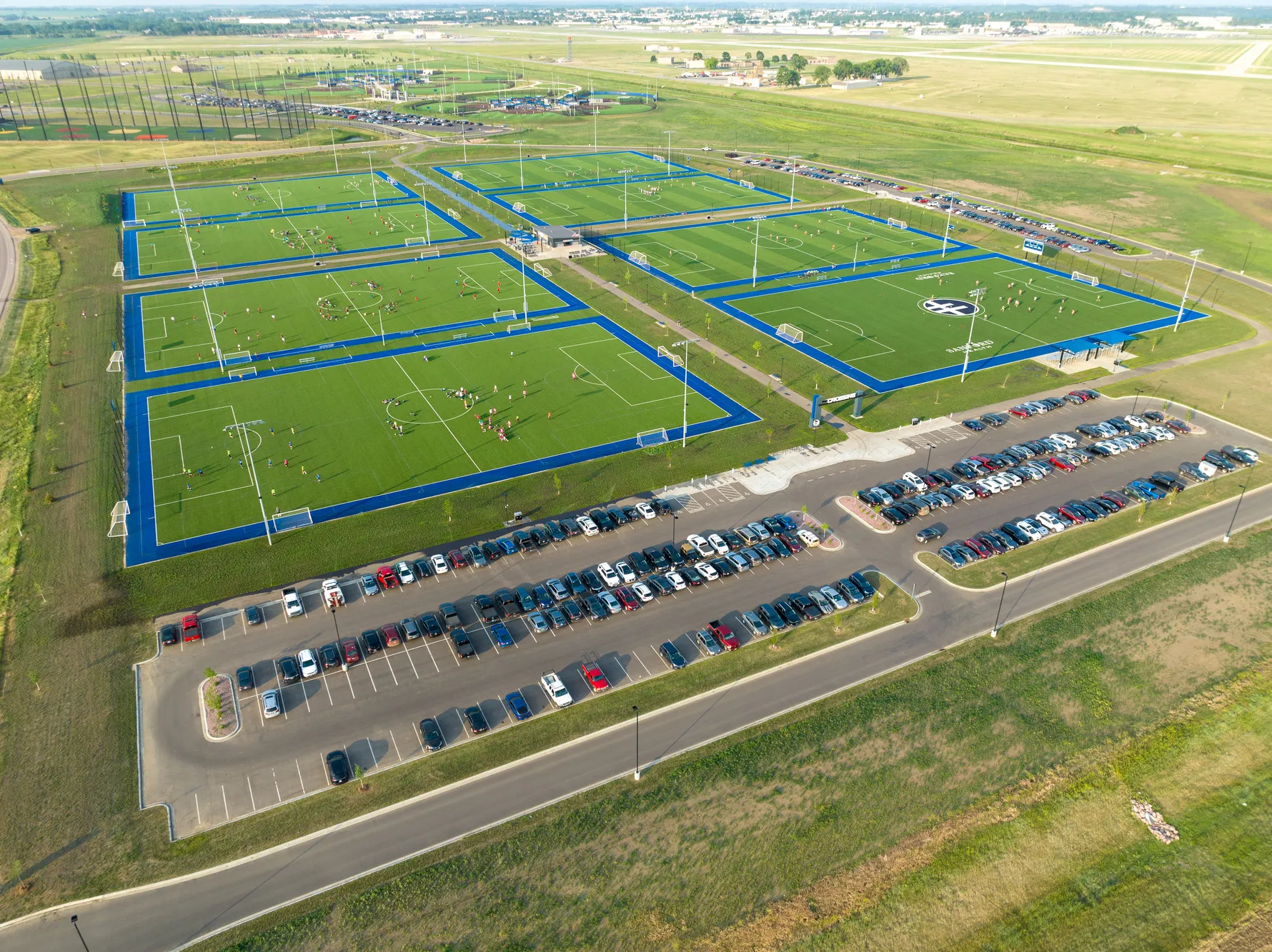The monumental task of designing a regional athletic destination required creating 18 synthetic multi-sport fields encompassing a span of 173 acres, into one of the largest active artificial turf projects in the country and included extensive multi-use amenities. ISG partnered to transform the greenfield site into a live, work, and play destination, estimated to bring 1 million new visitors over five years for tournaments, sports training, programs, and league play.