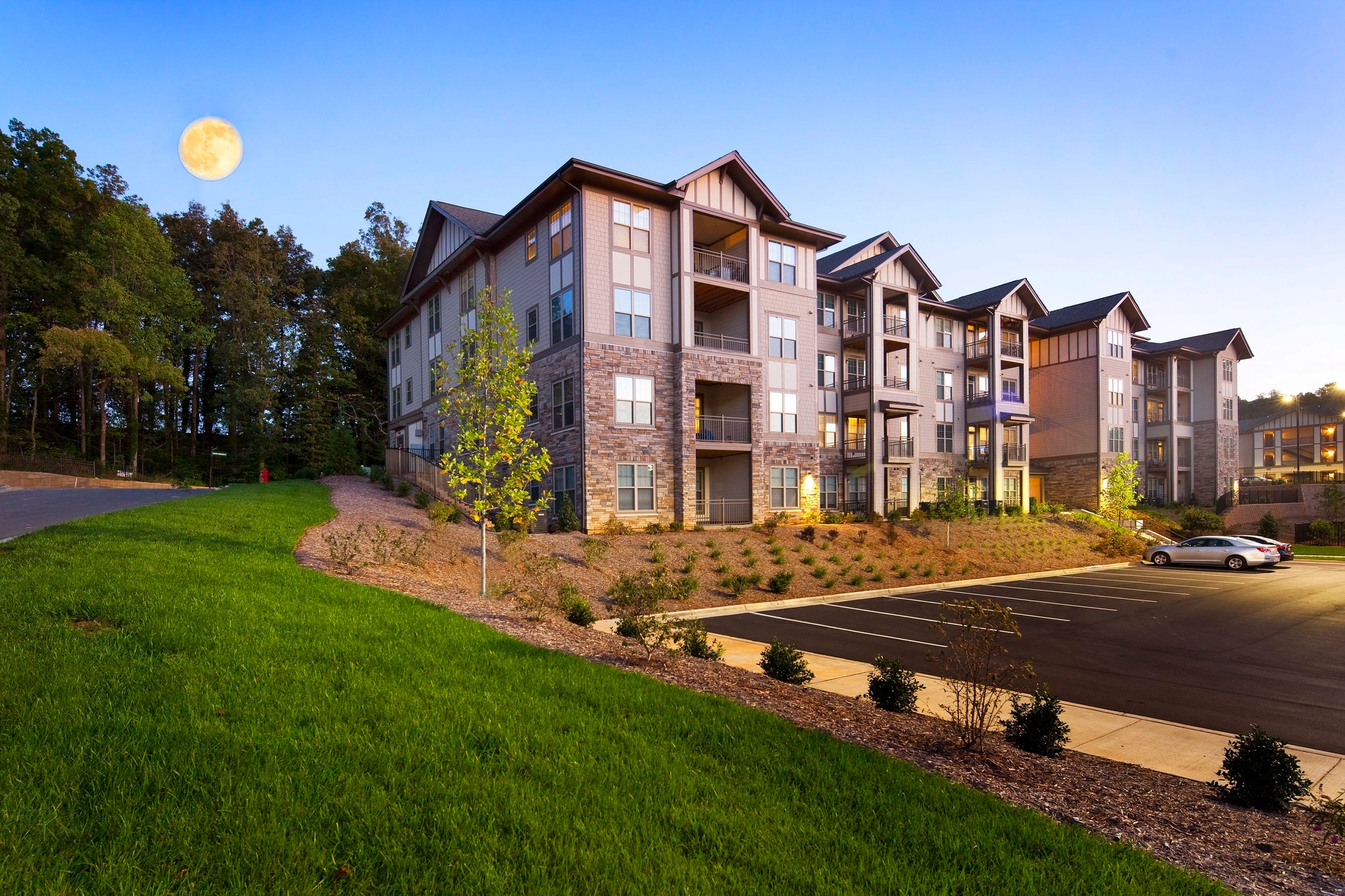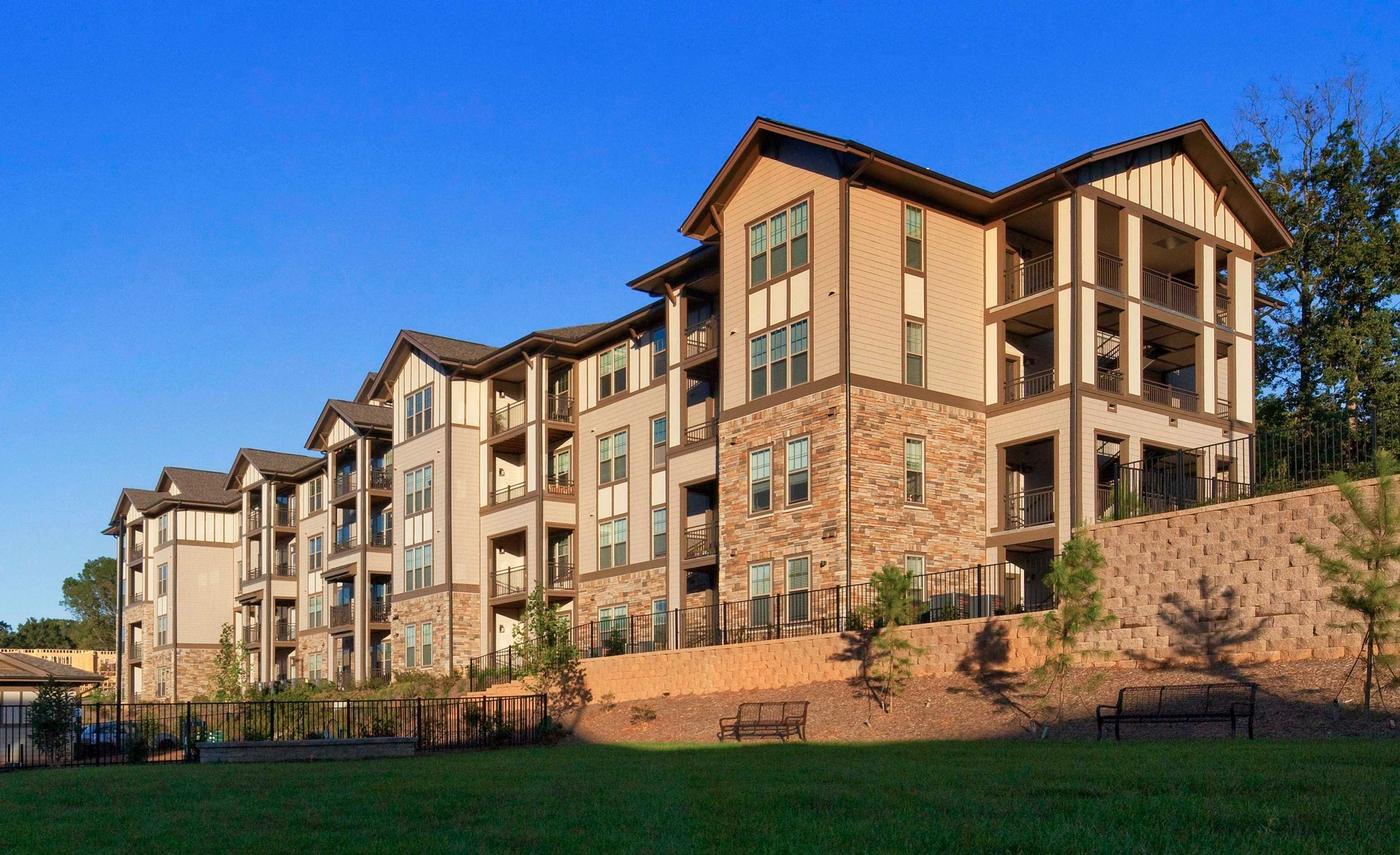 Set within a wooded site, ISG’s design for this four-story multifamily project emphasizes the connection between architecture, interior design, and the landscape. Working with the site’s topography, our multi-disciplinary team integrated the apartments, clubhouse, surface parking, and pool into the terrain to create a variety of views for residents.