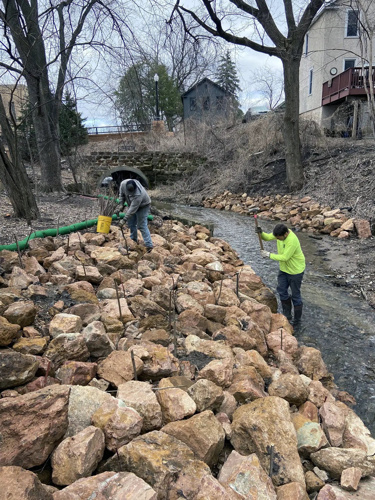The Spring Creek Stabilization project, led by ISG, addresses stream challenges caused by infrastructure and development that have increased runoff and stress on the stream and its sandy banks. Landowners along the privately owned creek have struggled with streambed migration, steep erosion, and bank failure, with previous mitigation efforts proving ineffective. ISG, engaged by the Lower Minnesota Watershed District, provided stream bank stabilization and reduced threats to private property, updating models, conducting surveys, and completing wetland delineation for permitting. The project includes construction management, vegetation maintenance plans, and spring planting to ensure long-term ecological health and restoration.
