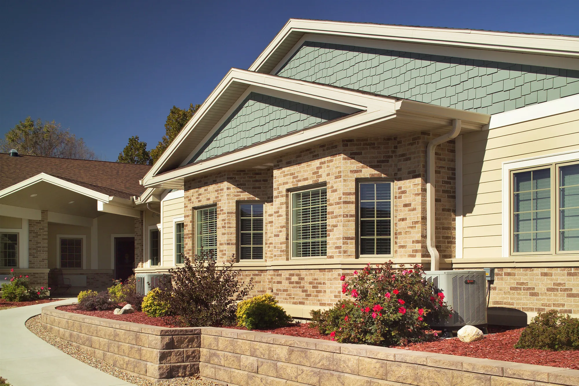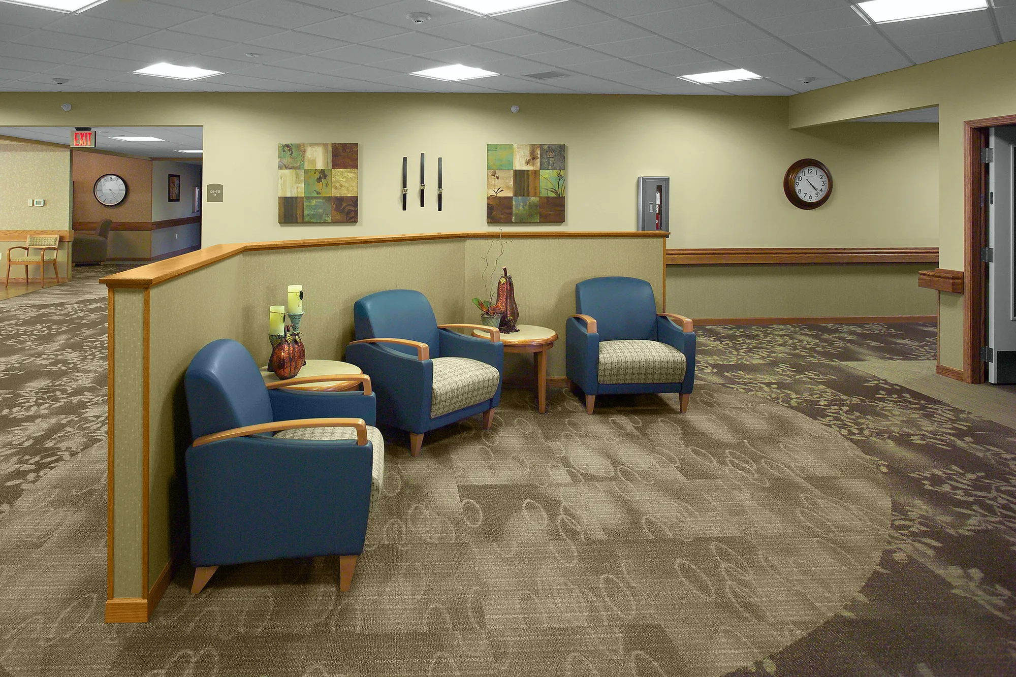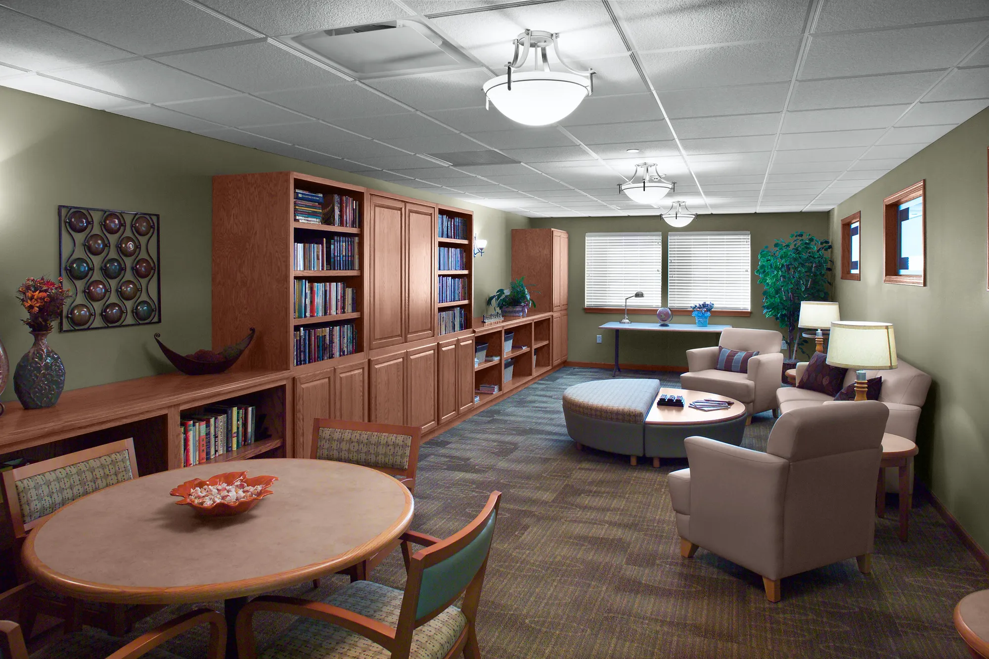 The Sunrise Hill Care Facility needed to add assisted living care to expand its offerings to the community. ISG’s design for the addition included four private resident rooms, a chapel, a beauty salon, and an assisted living wing. The new assisted living wing includes four two-bedroom and 13 one-bedroom units, each with individual mechanical rooms to allow for independent comfort controls. Other spaces include a new dining room, library, lounge, kitchen, sunroom, fitness room, two offices, laundry room, storage rooms, and a private rest room. Exterior site improvements included a private terrace area off the assisted living wing, parking area, and a walking path area with extensive retaining wall enhancements at the front of the building.