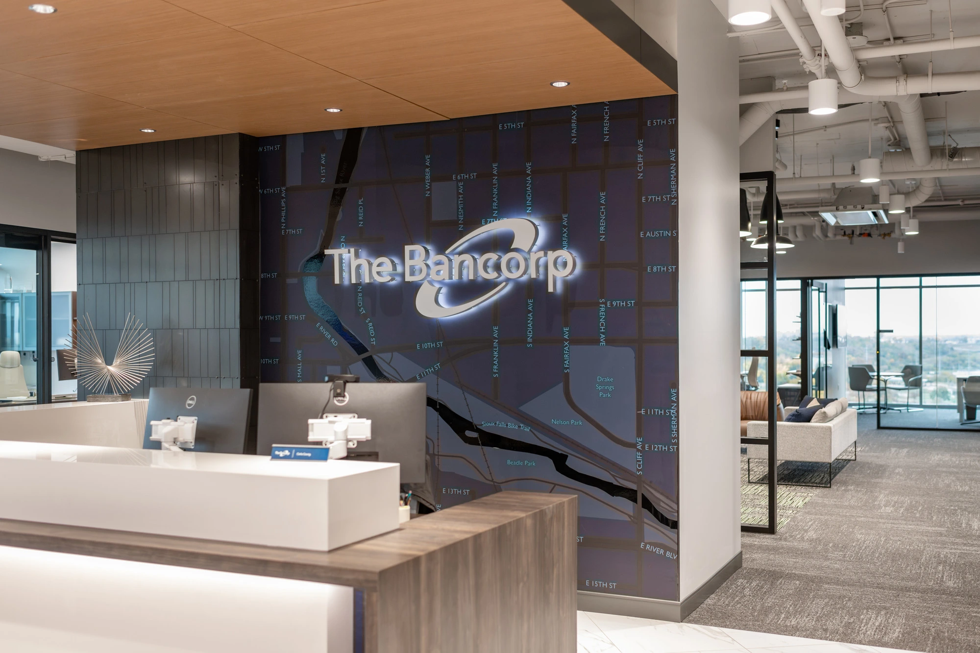Namesake and anchor tenant, The Bancorp repositioned its Sioux Falls, South Dakota, office within The Bancorp Building at Cherapa Place to support the company’s long-term growth plan. In partnership with ISG, the tenant spaces were developed to encourage connectivity, movement, and engagement. Designed to attract and retain employees, the offices, conference rooms, and entrance, thoughtfully integrate The Bancorp brand, enhancing the user experience throughout. Through strategic collaboration and modern design solutions, the new spaces have positioned The Bancorp to continually support local development and exceed its internal growth goals.