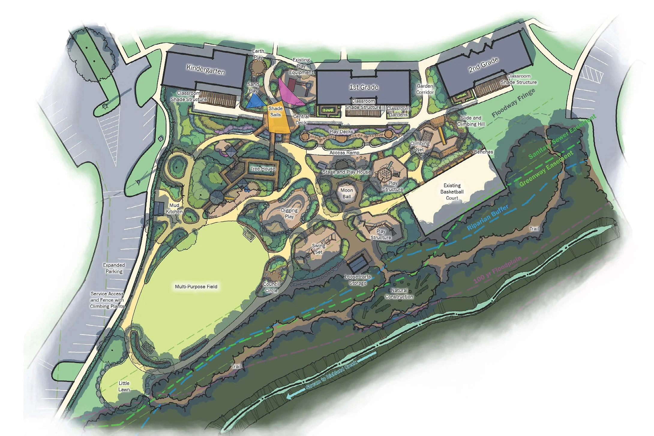 Building on a relationship developed through a previous preschool outdoor learning project, ISG was invited to design The Raleigh School’s new elementary play and learning area. The design transforms the two-acre space into a dynamic outdoor environment that extends learning beyond the classroom while strengthening the sense of community.