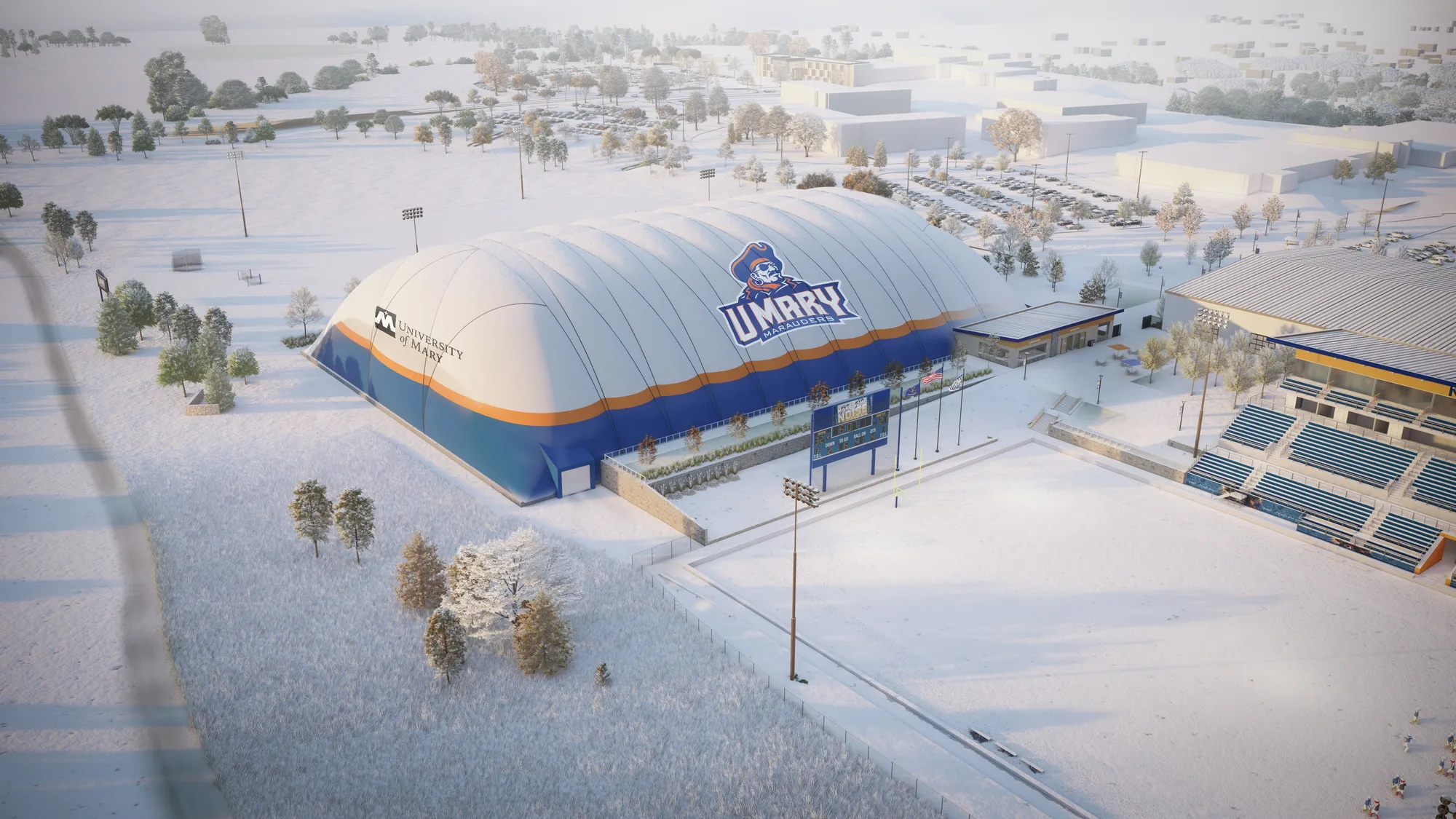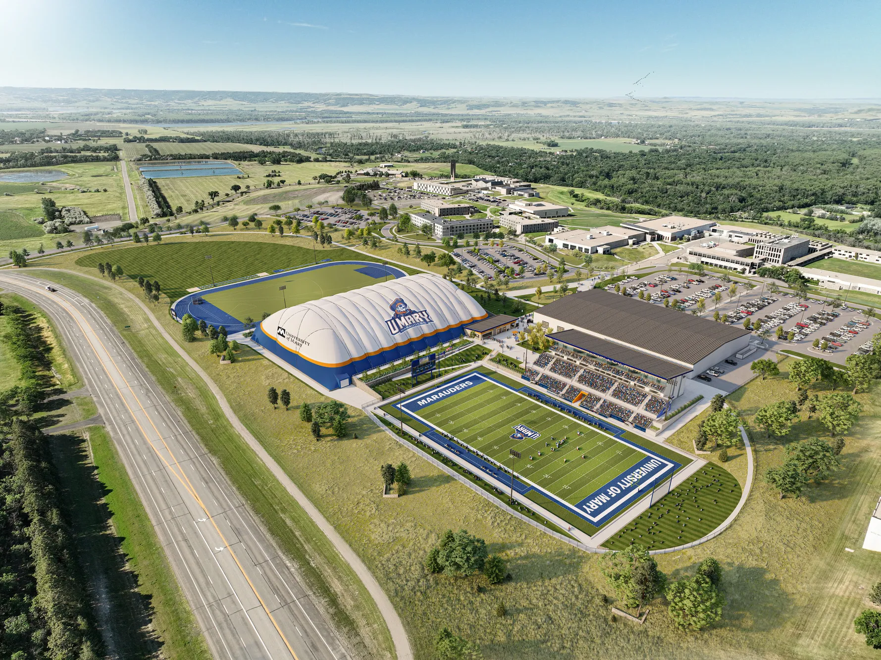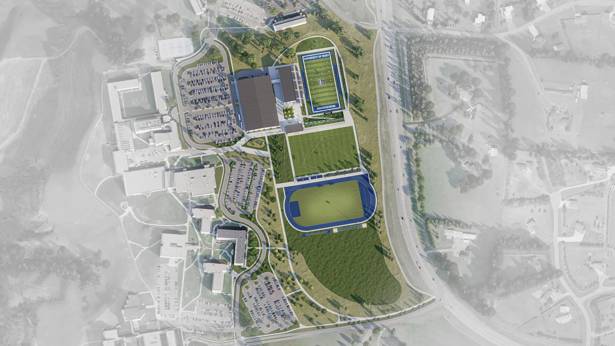 ISG partnered with the University of Mary to refresh its athletic facility complex. Design improvements include amenities like the home spectator grandstand and sports performance facility, game day plaza, football and soccer field, softball field, batting cages, baseball field, track, and multi-use practice field. Throughout the master planning and design process, ISG is taking the time to vet plans, analyze existing conditions, and understand the University’s needs, leading to meaningful, feasible, and impactful solutions that will enhance the student-athlete and fan experience.